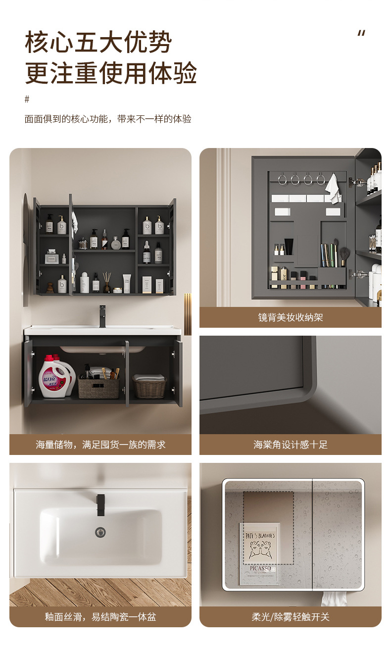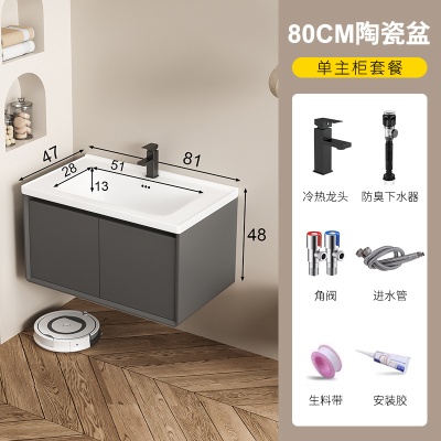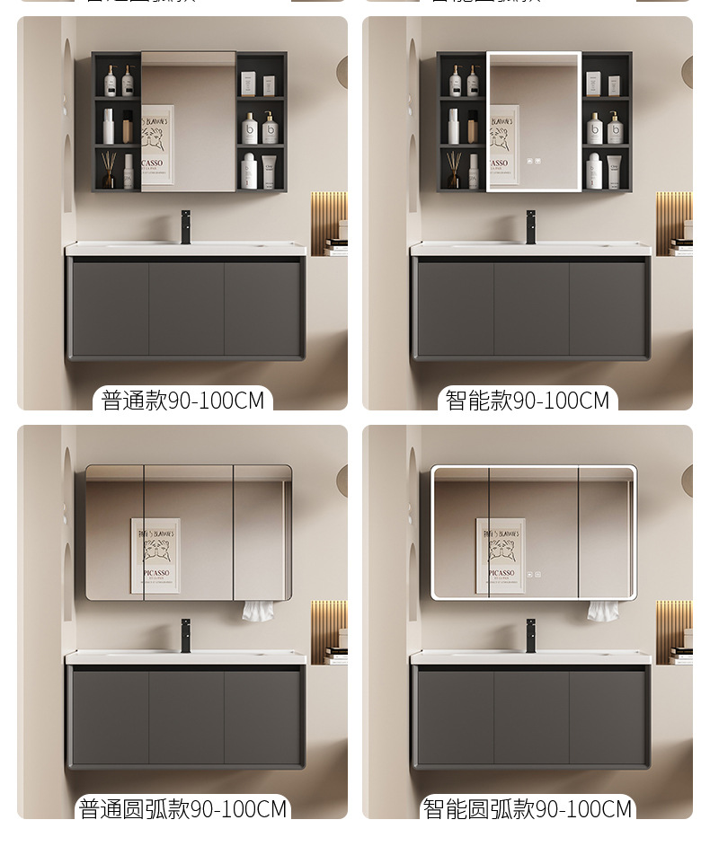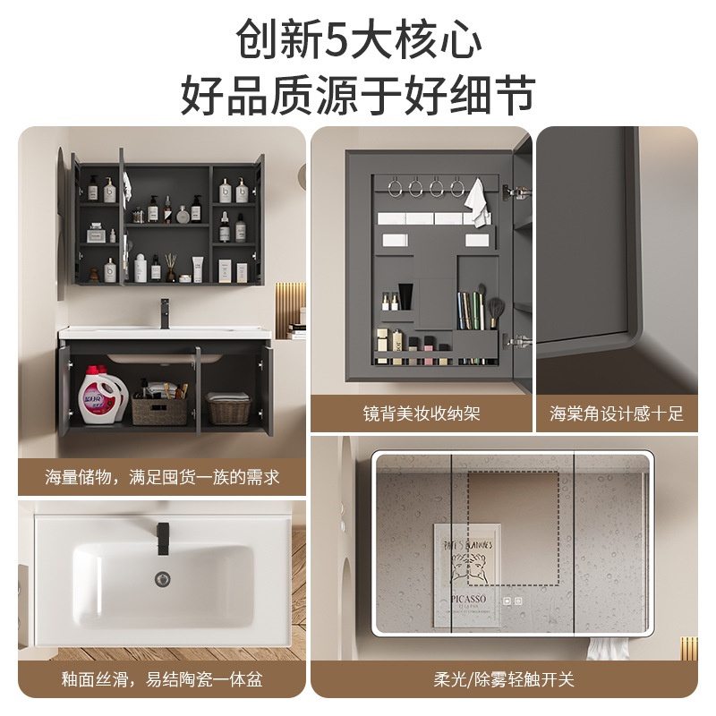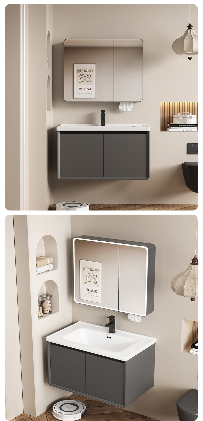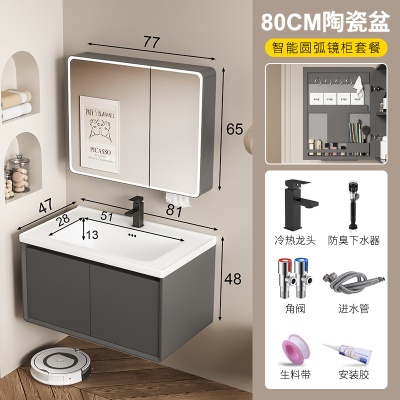 深灰色80CM+陶瓷盆+智能圆弧镜柜
