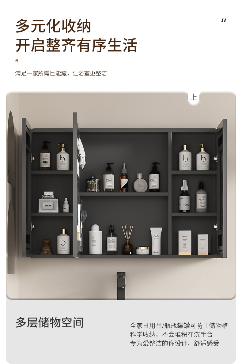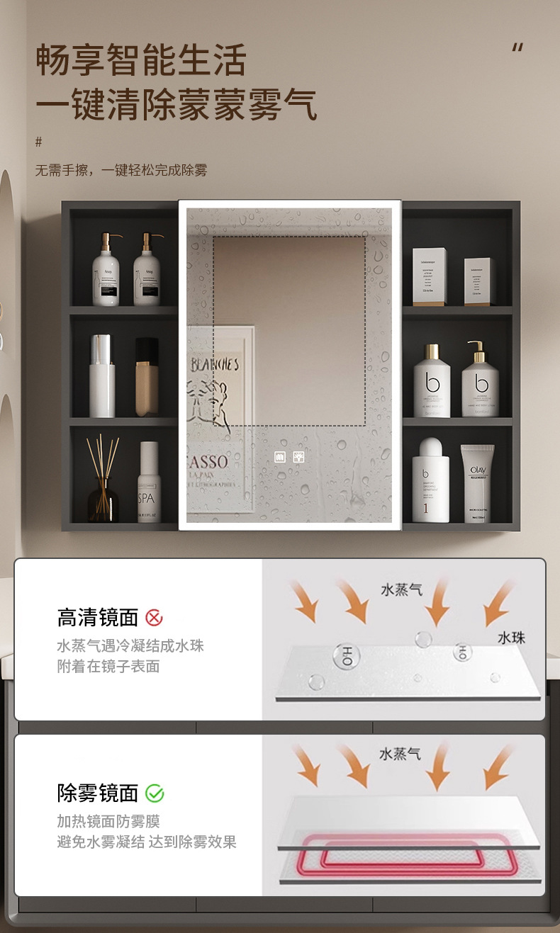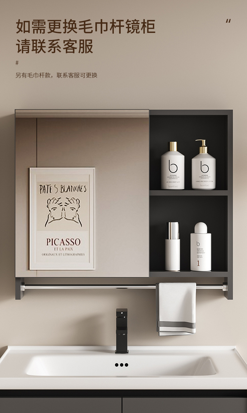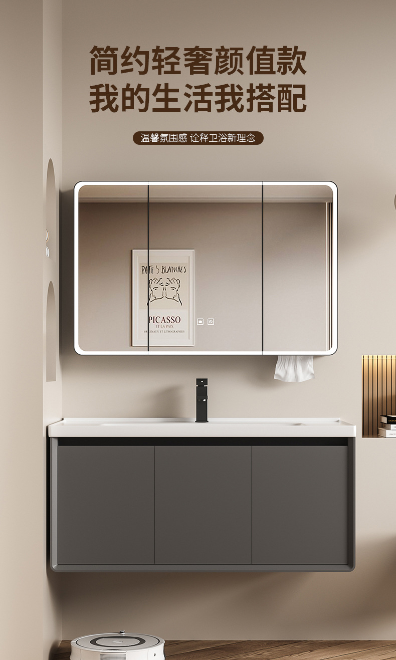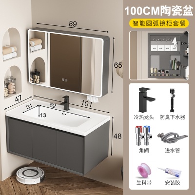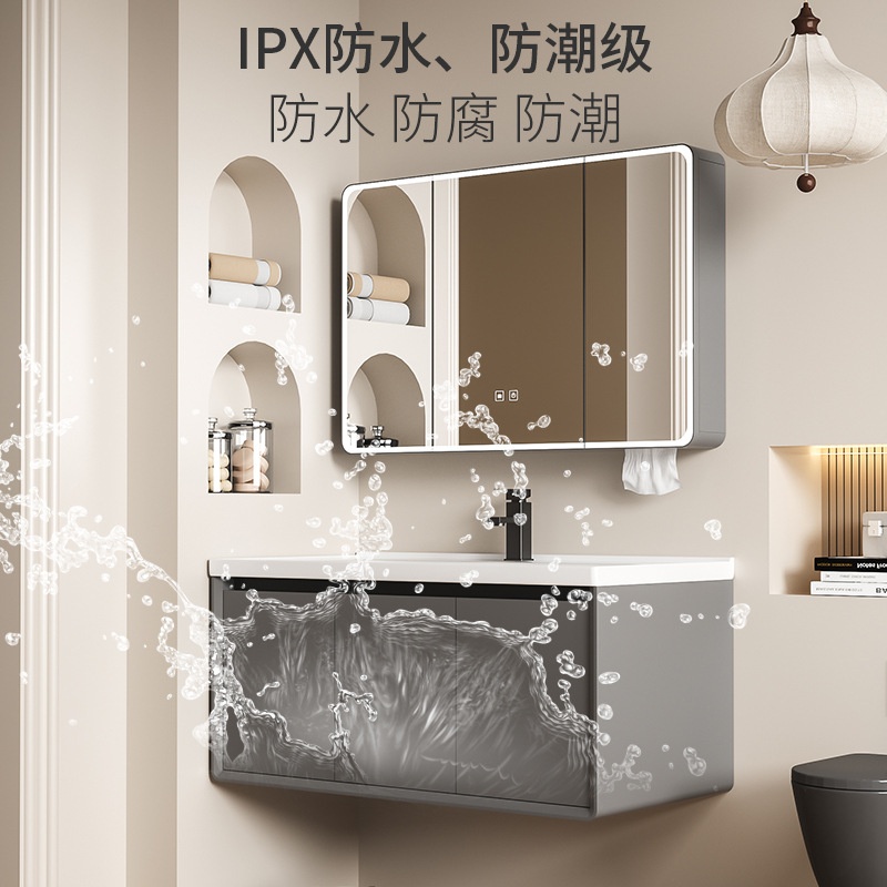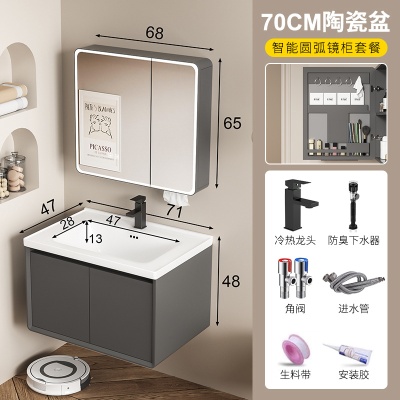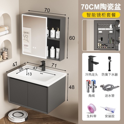 深灰色70CM+陶瓷盆+智能圆弧镜柜