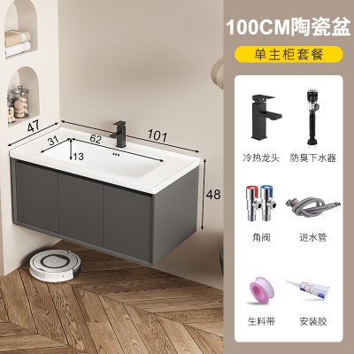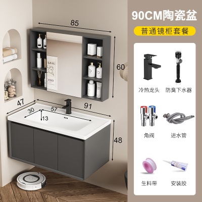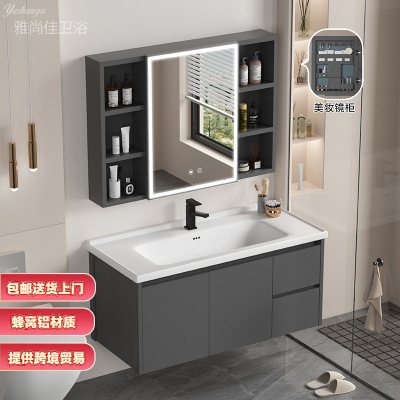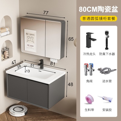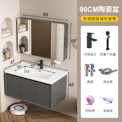太空铝蜂窝圆弧浴室柜带侧柜洗手盆组合卫生间洗脸盆洗漱一体陶瓷
