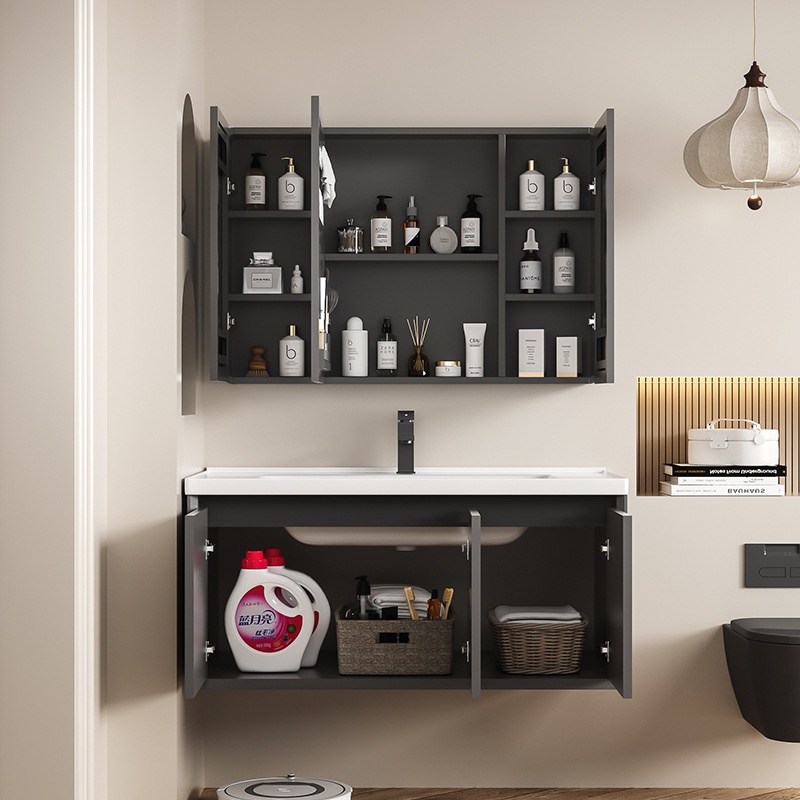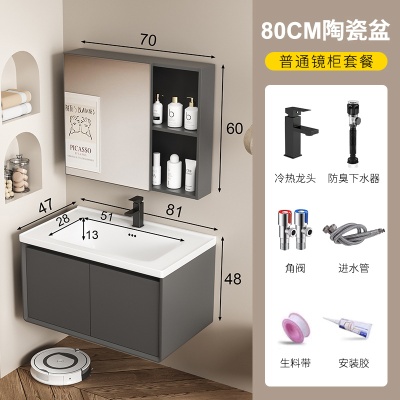 深灰色80CM+陶瓷盆+普通圆弧镜柜