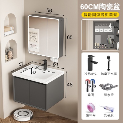 深灰色60CM+陶瓷盆+智能圆弧镜柜