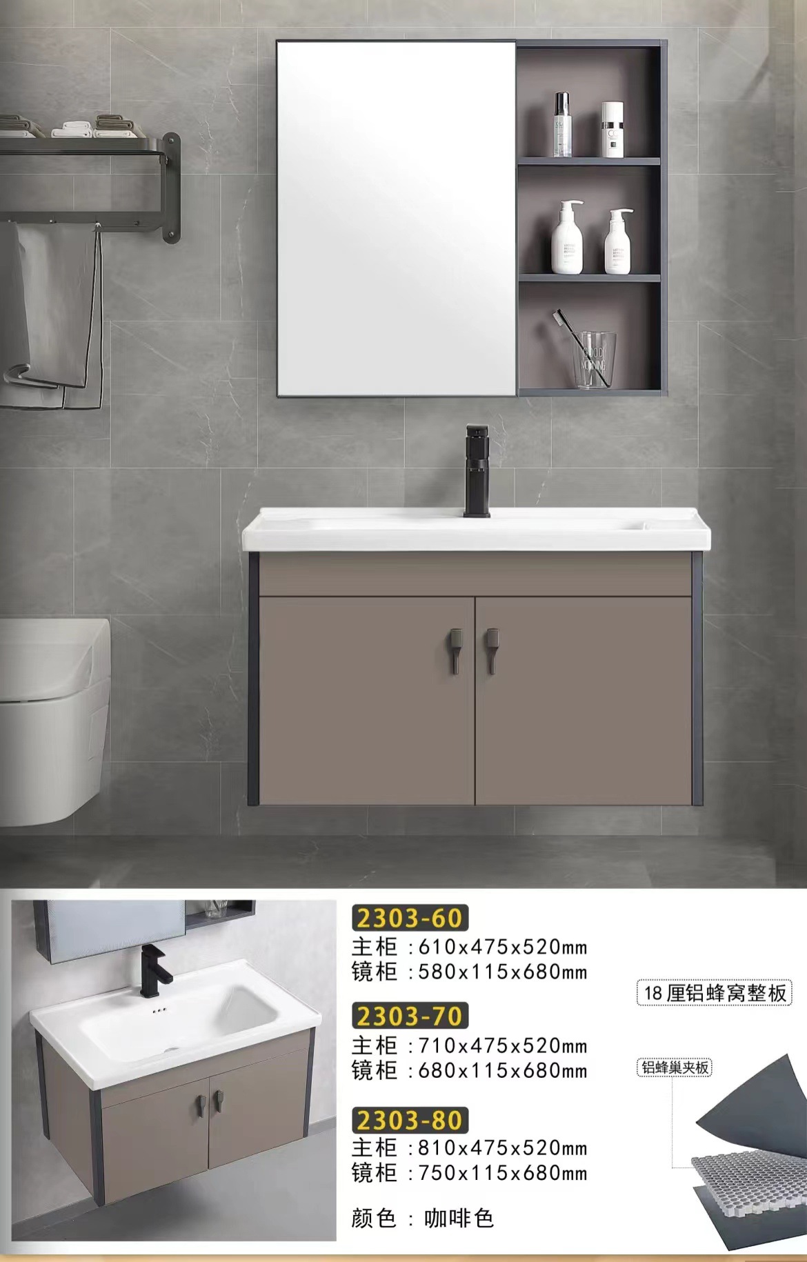 铝蜂窝浴室柜浴室智能镜柜挂墙式卫生间收纳储物组合置物柜