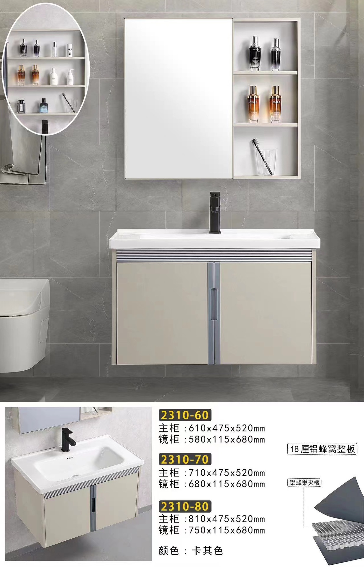商品名稱:铝蜂窝浴室柜浴室智能镜柜挂墙式卫生间收纳储物组合置物柜