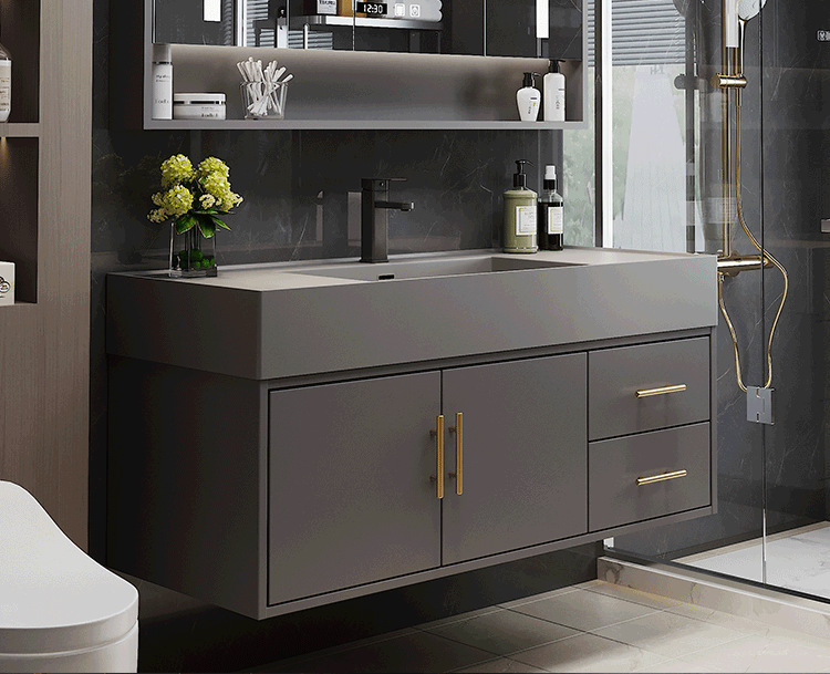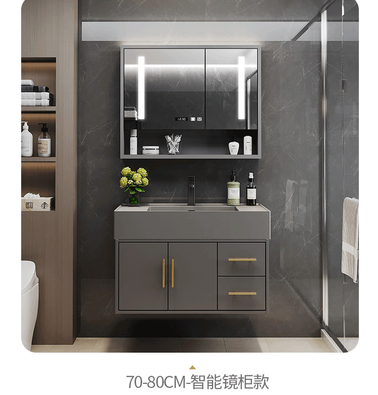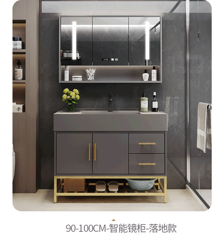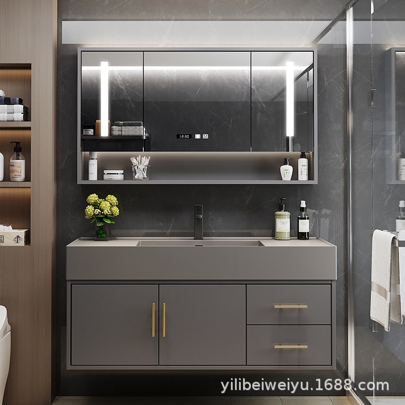 厂家直销浴室柜组合简约实木一体盆洗脸洗手池卫生间洗漱台卫浴