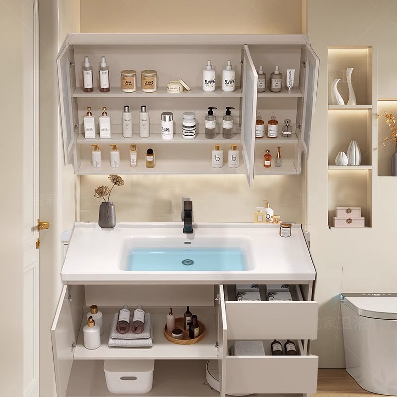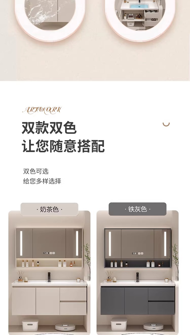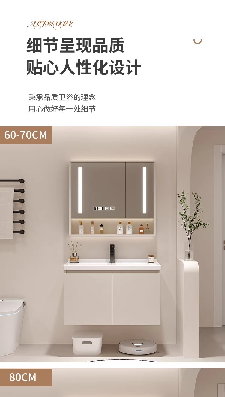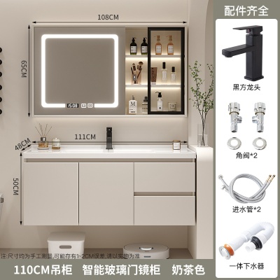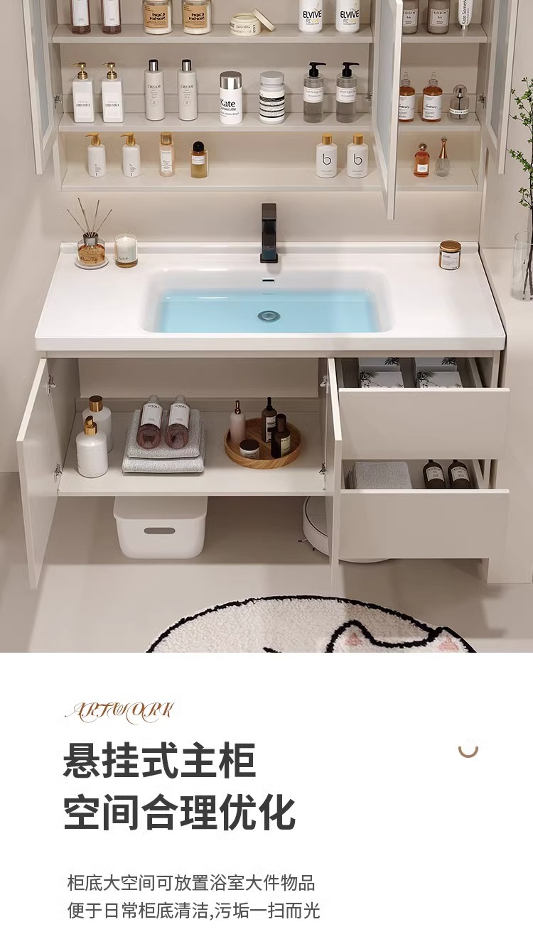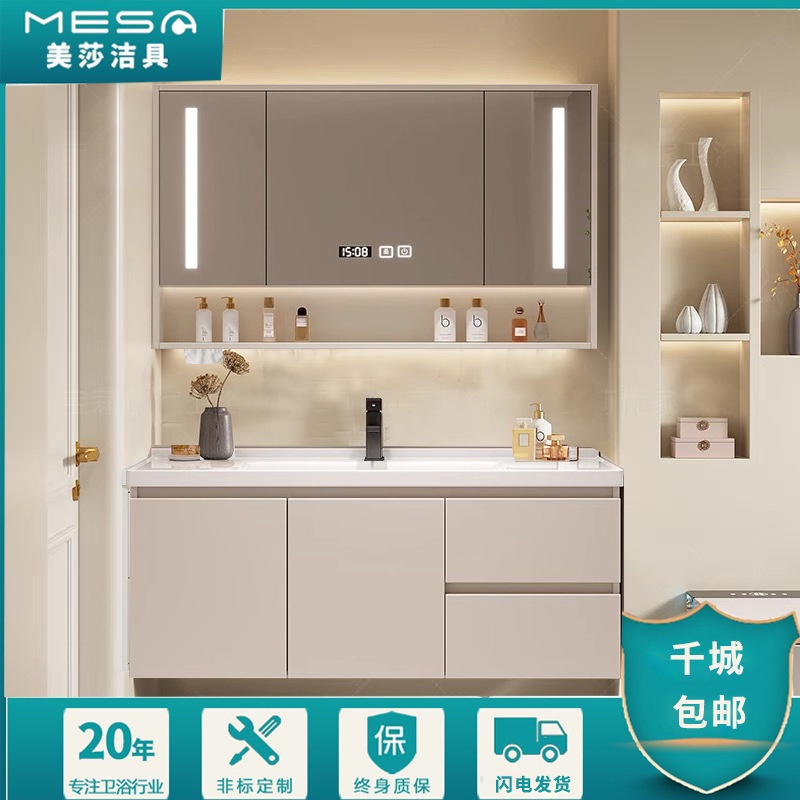 浴室柜组合卫生间洗手台洗脸盆柜洗漱台陶瓷一体盆智能镜柜奶油风
