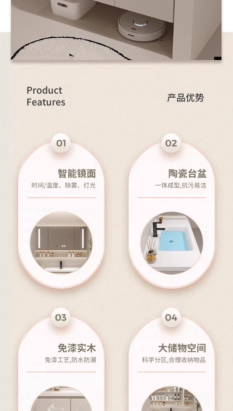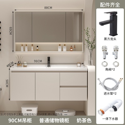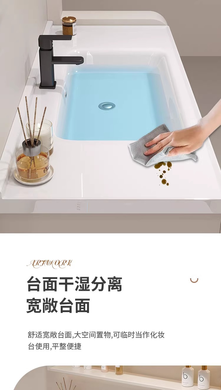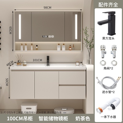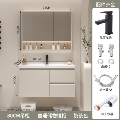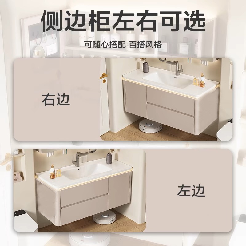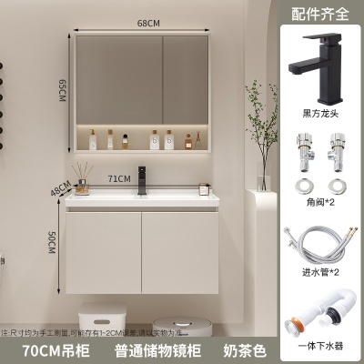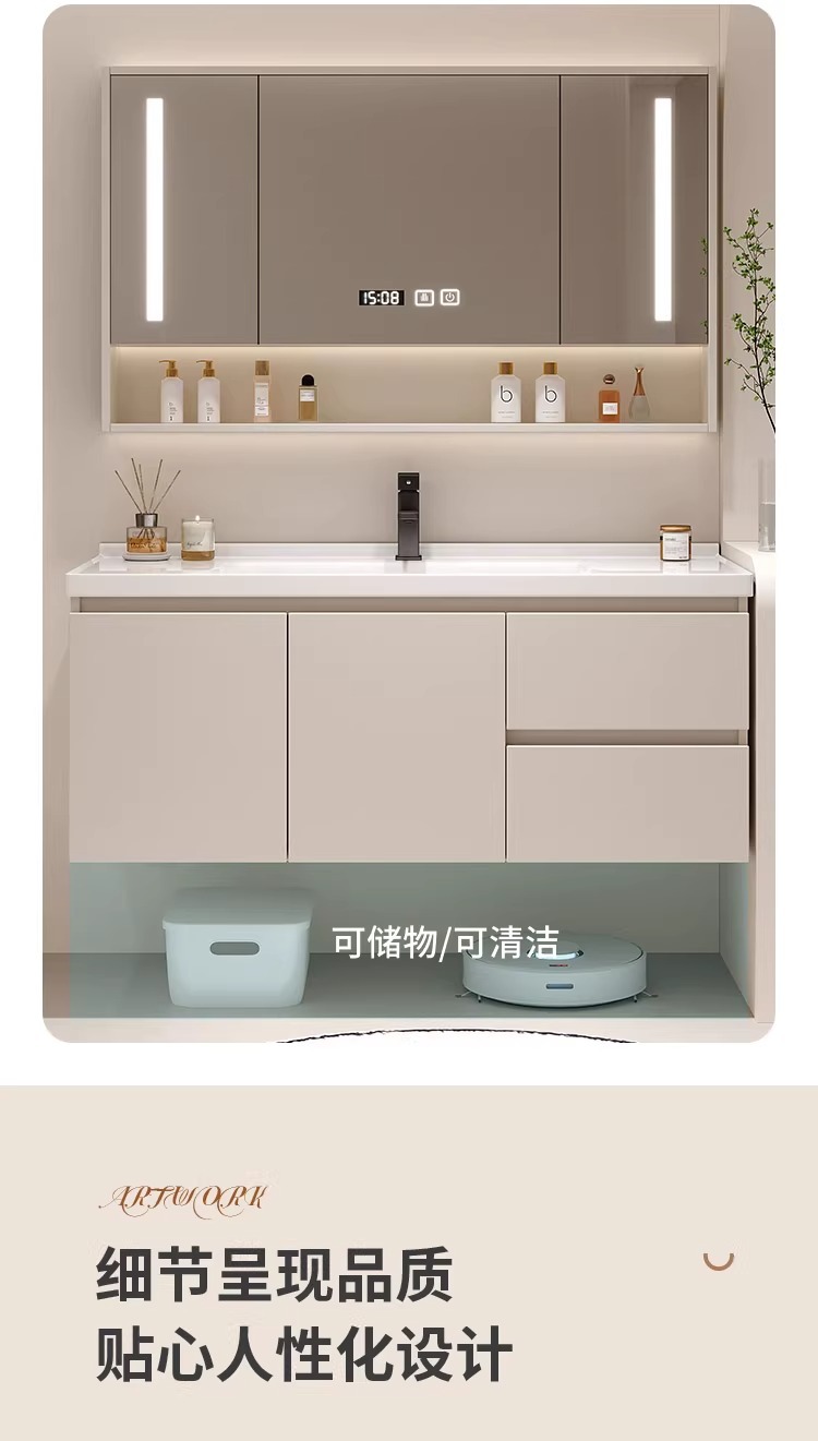 浴室柜组合卫生间洗手台洗脸盆柜洗漱台陶瓷一体盆智能镜柜奶油风