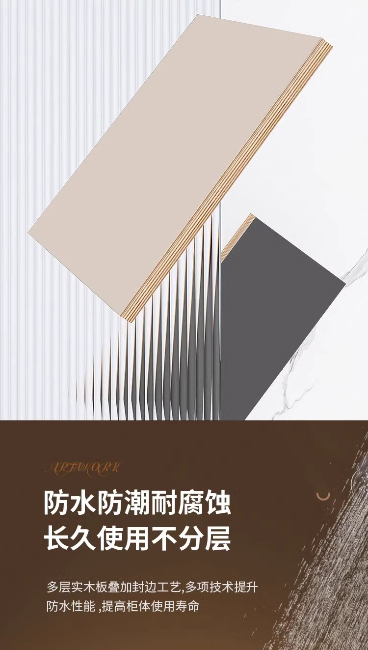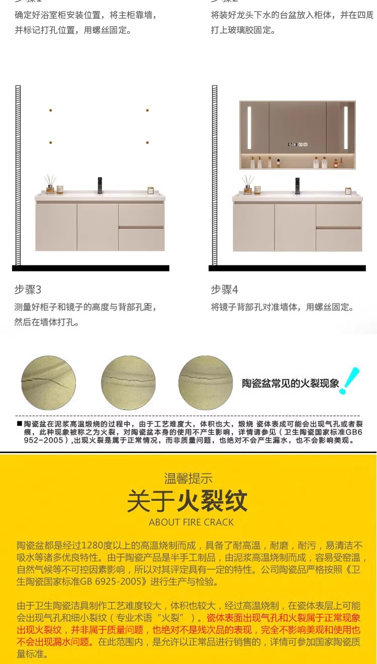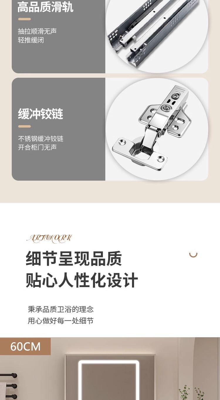6038奶油风吊柜智能镜柜 送黑四方龙头