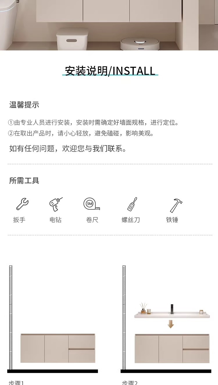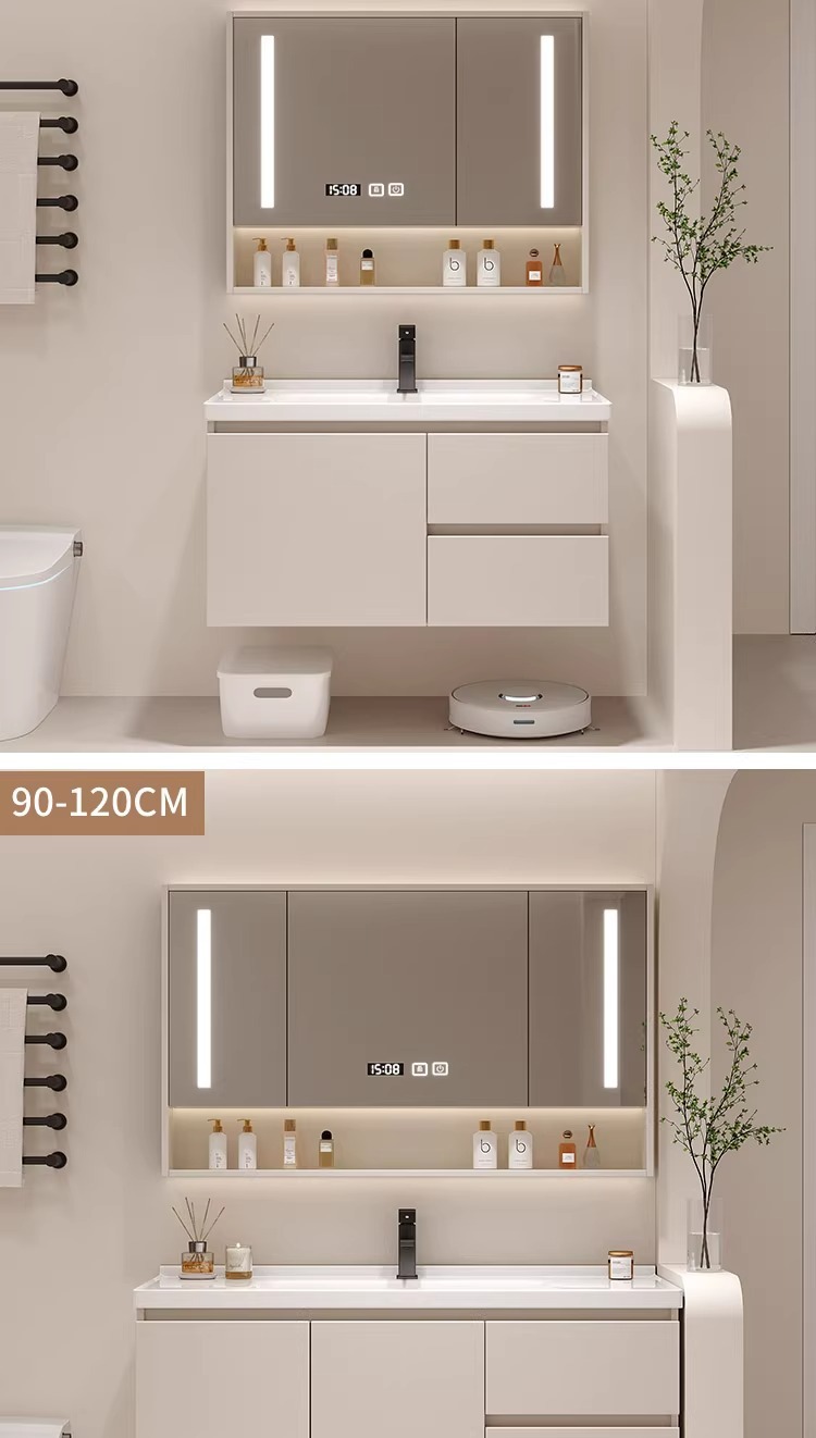 9038奶油风吊柜智能镜柜 送黑四方龙头