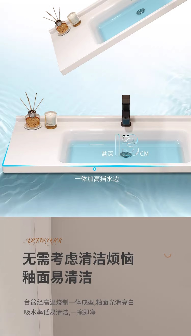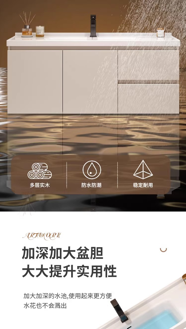 奶油色陶瓷一体盆浴室柜组合实木卫生间洗脸盆洗手盆洗漱台洗手台