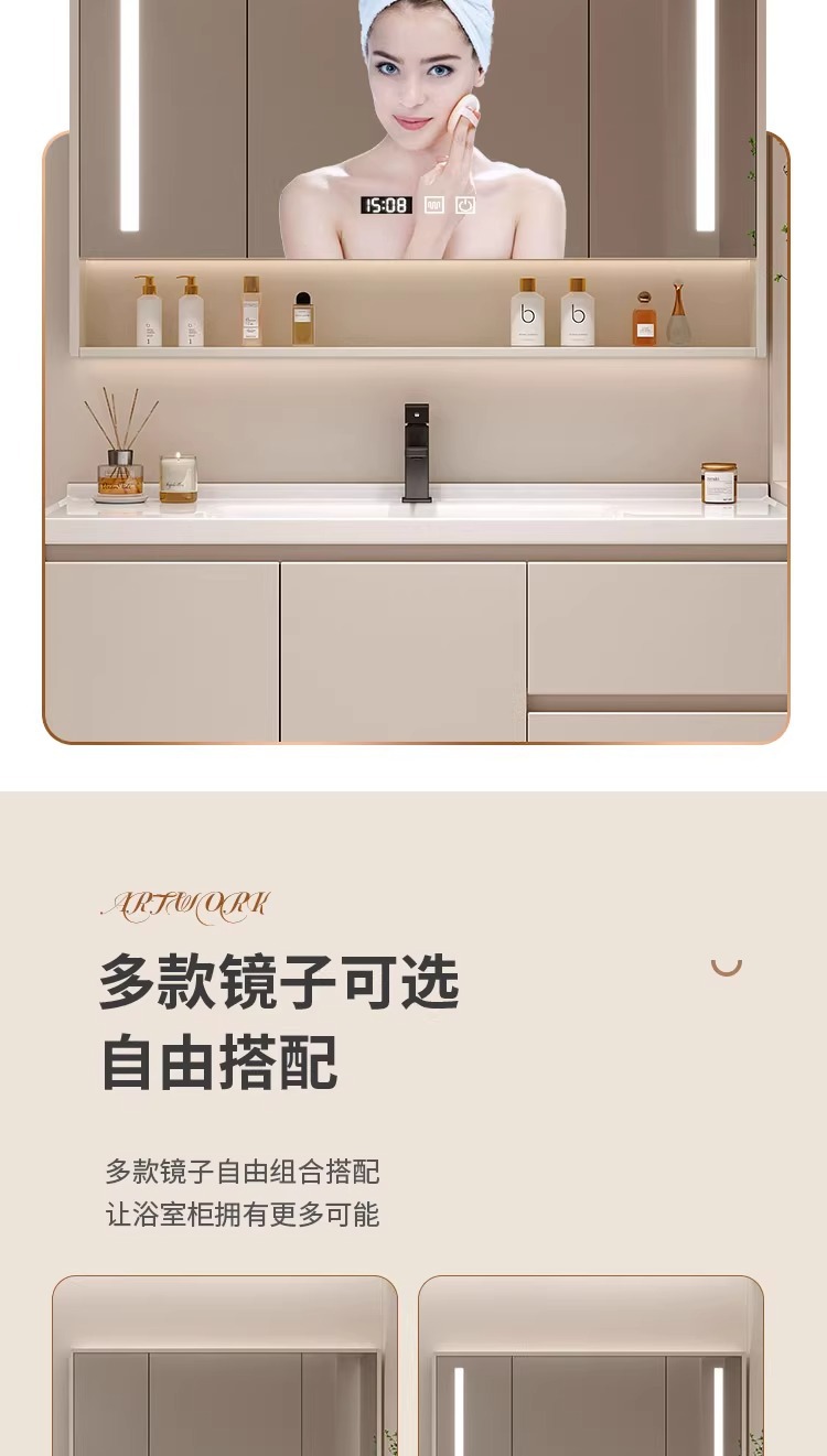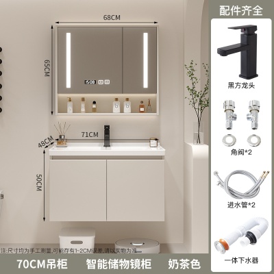 7038奶油风吊柜智能镜柜 送黑四方龙头