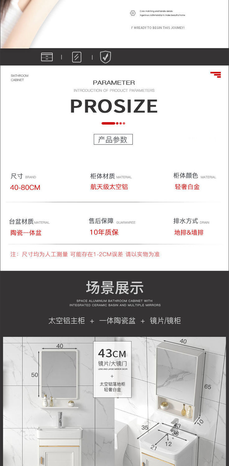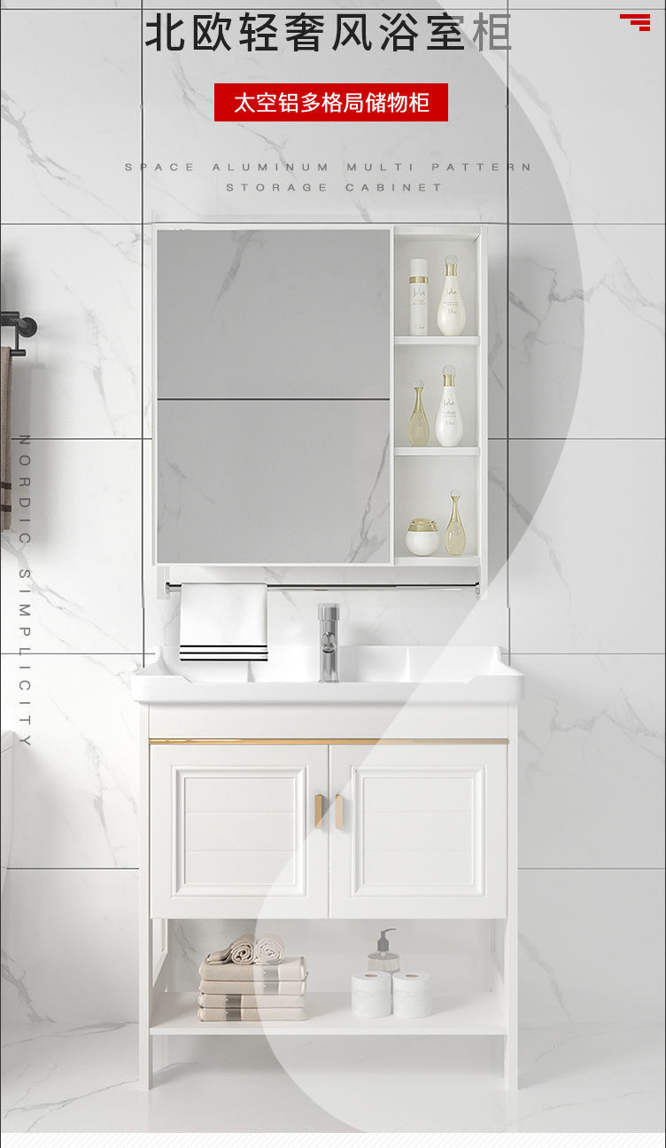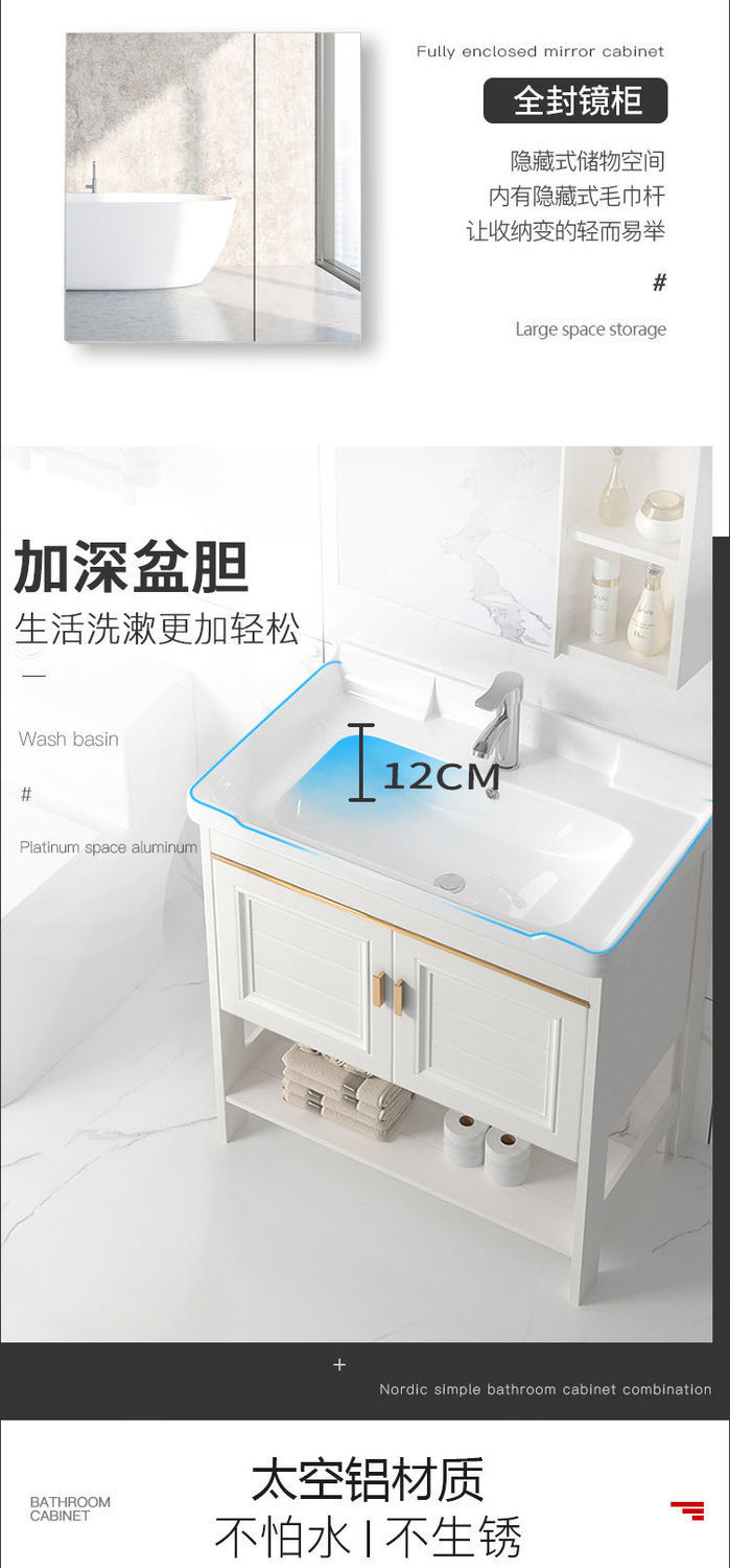 商品名稱:落地式洗手盆柜组合太空铝卫生间洗脸盆小户型浴室柜洗漱台池简易