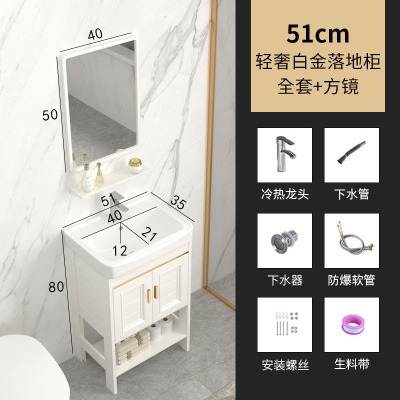 ¤全套+镜子-落地柜带门51*35 (白金)---承泰工厂