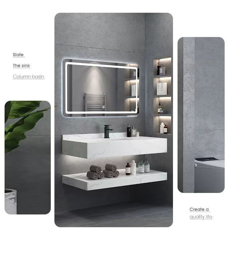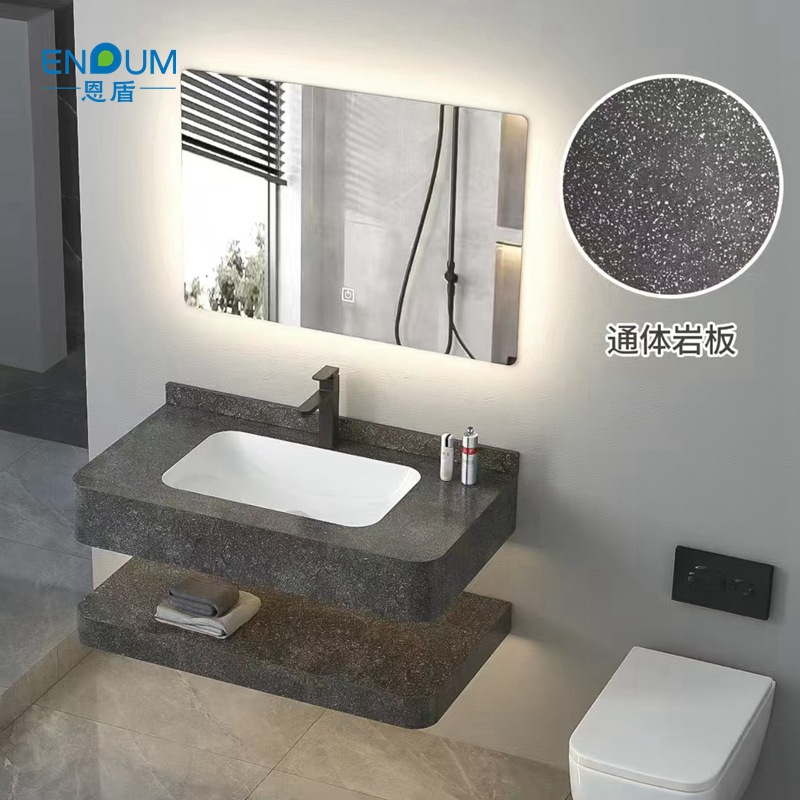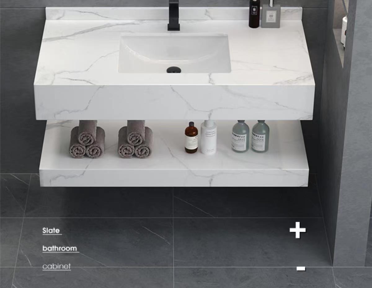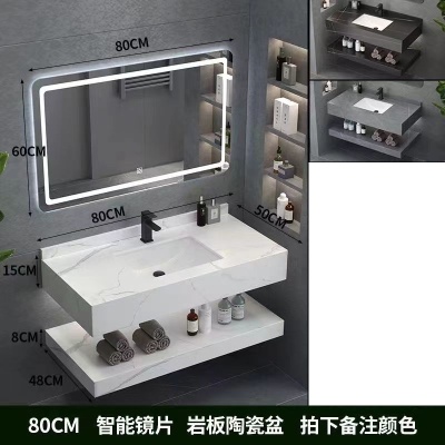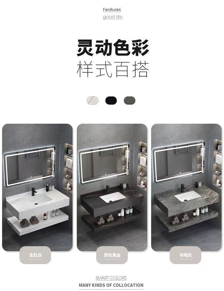 商品名稱:厂家直销简约酒店风双层岩板浴室柜洗手台洗脸盆洗漱台家装工程