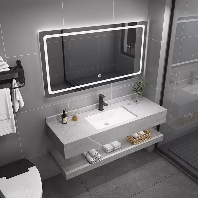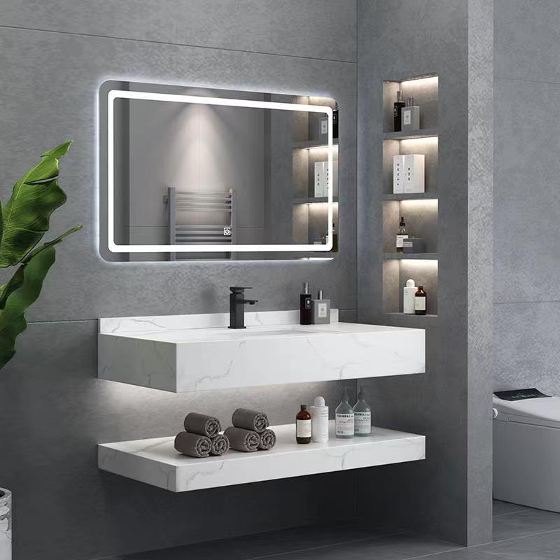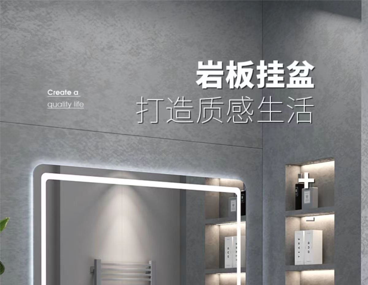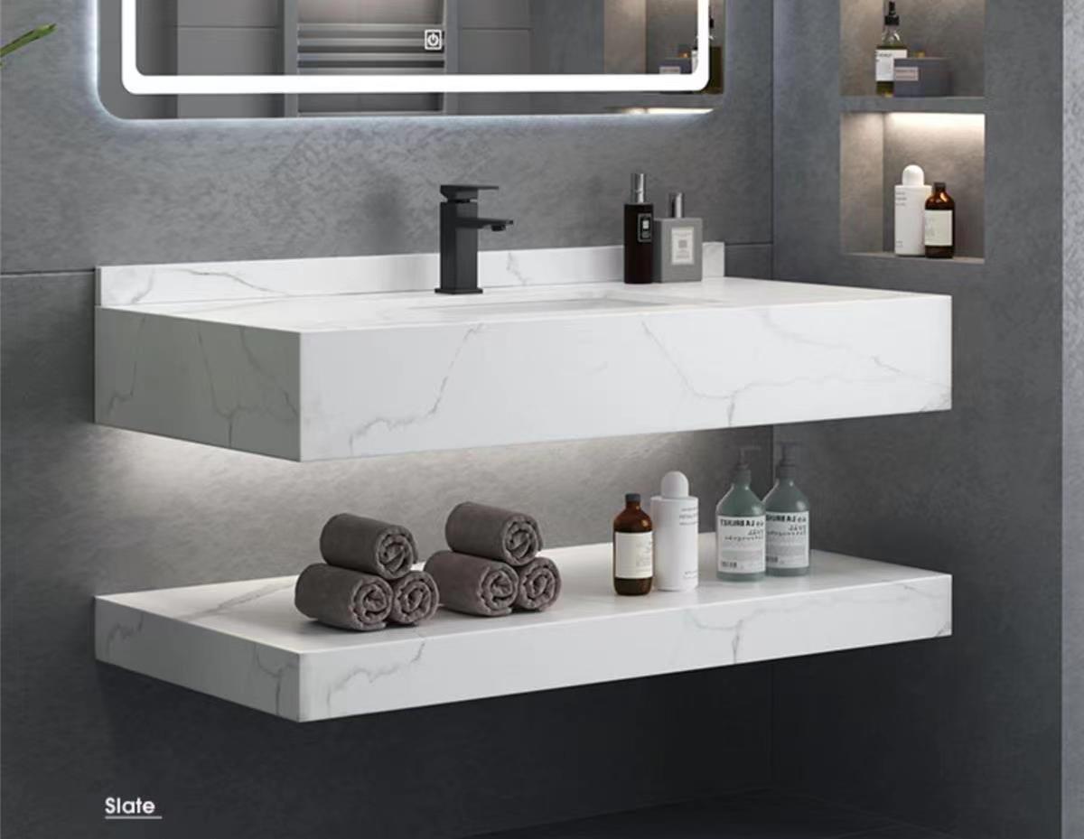 商品名稱:厂家直销简约酒店风双层岩板浴室柜洗手台洗脸盆洗漱台家装工程