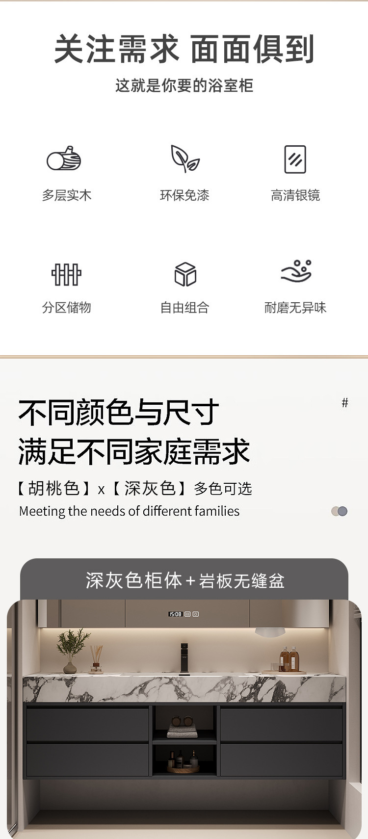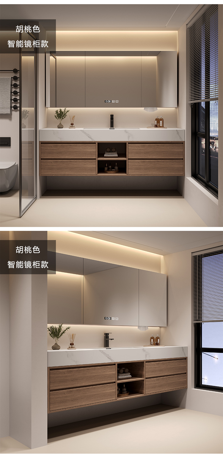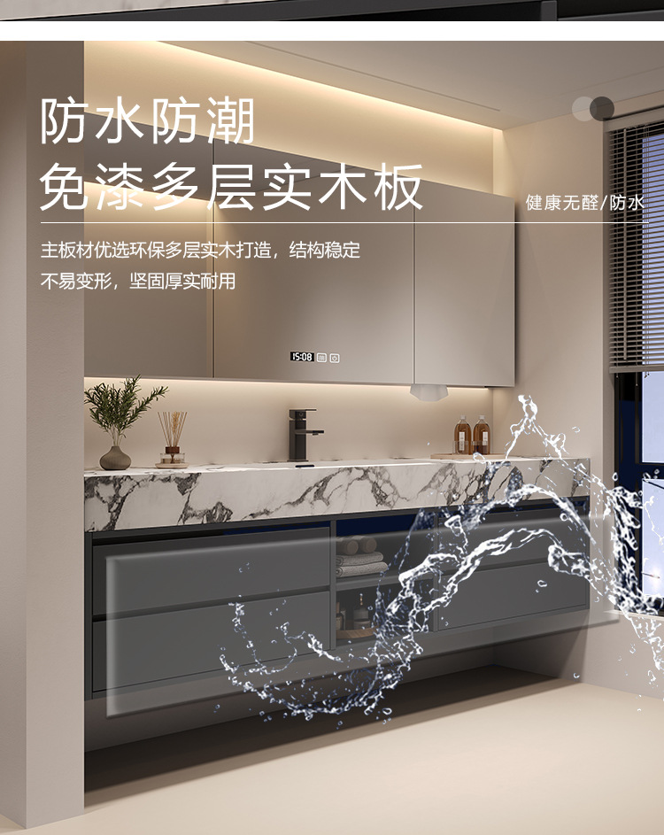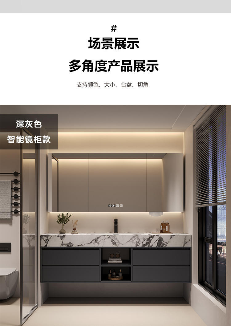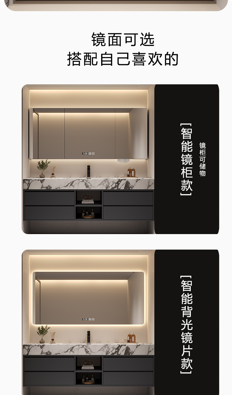 80CM主柜+岩板无缝陶瓷盆+智能镜