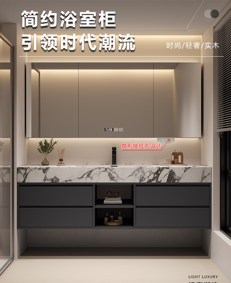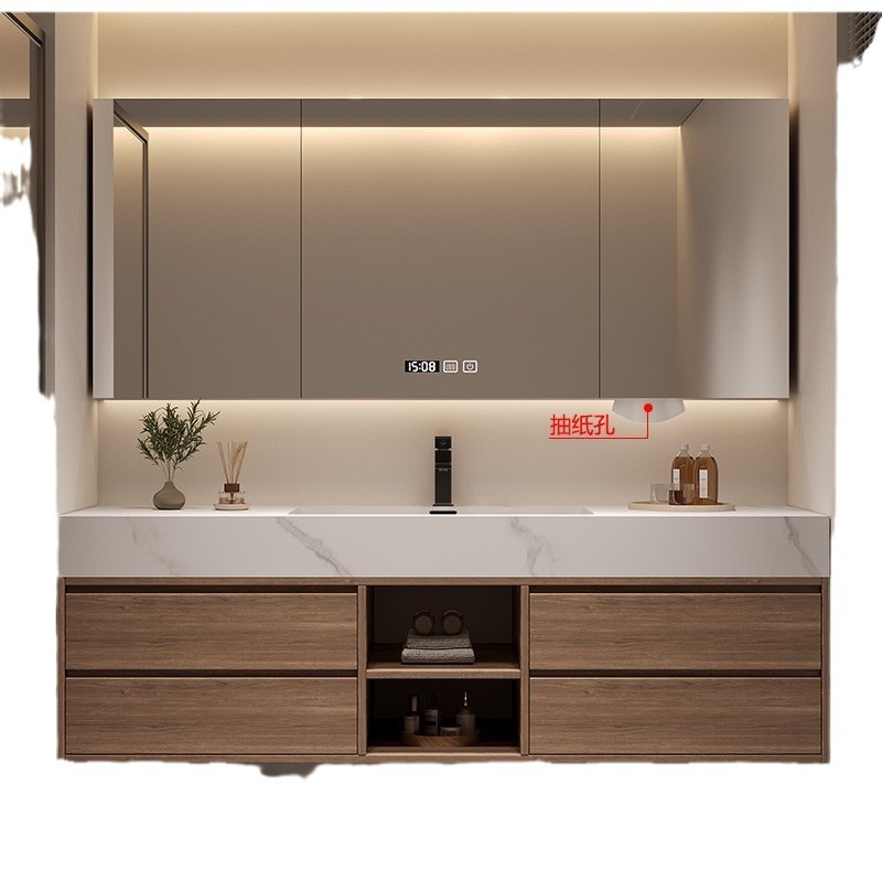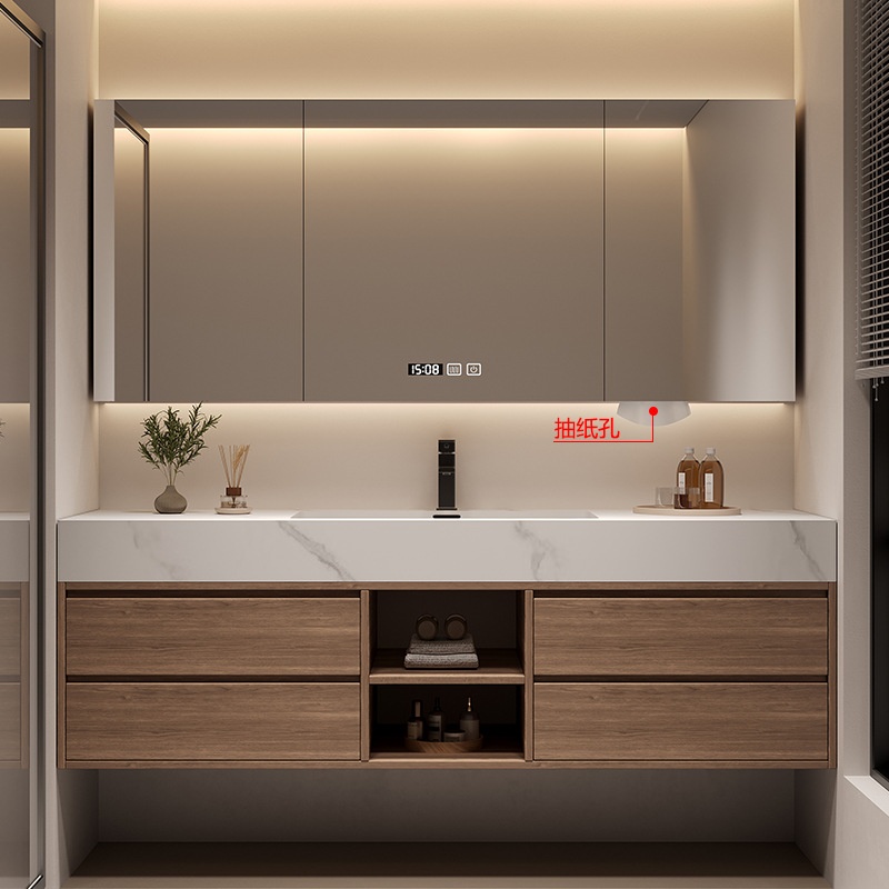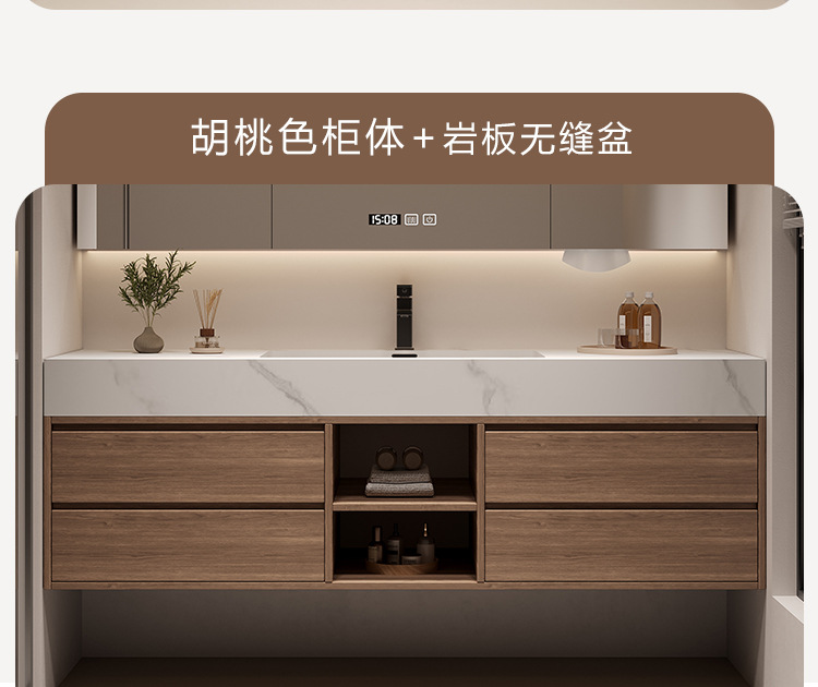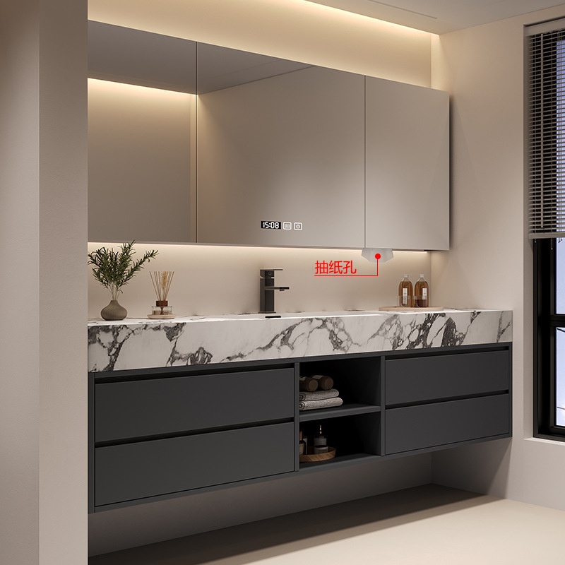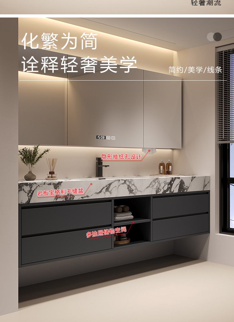 轻奢简约岩板洗漱台无缝陶瓷一体盆浴室柜洗手洗脸盆柜组合卫浴柜