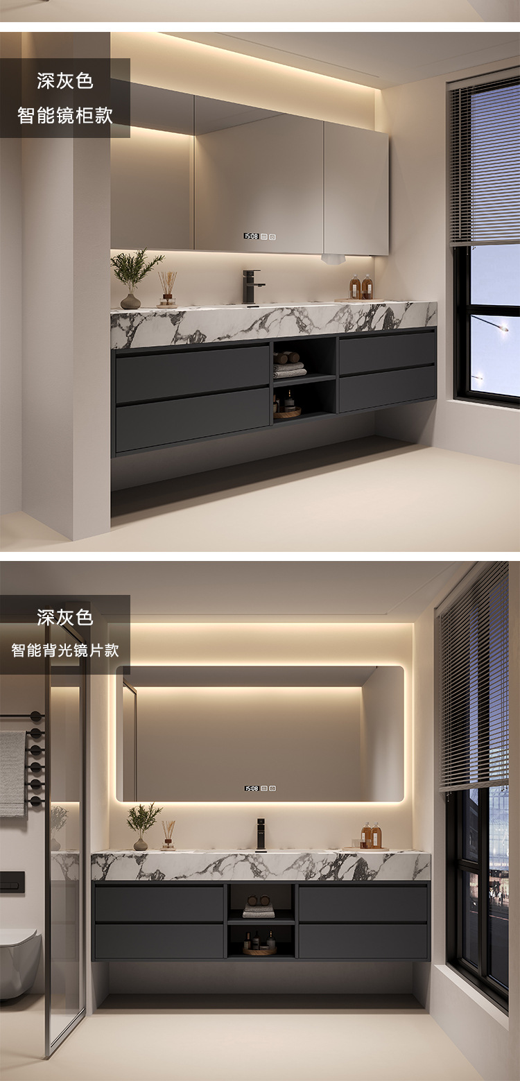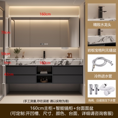 160CM主柜+岩板无缝陶瓷盆+智能镜