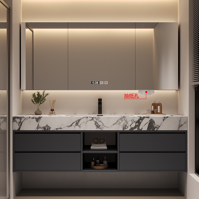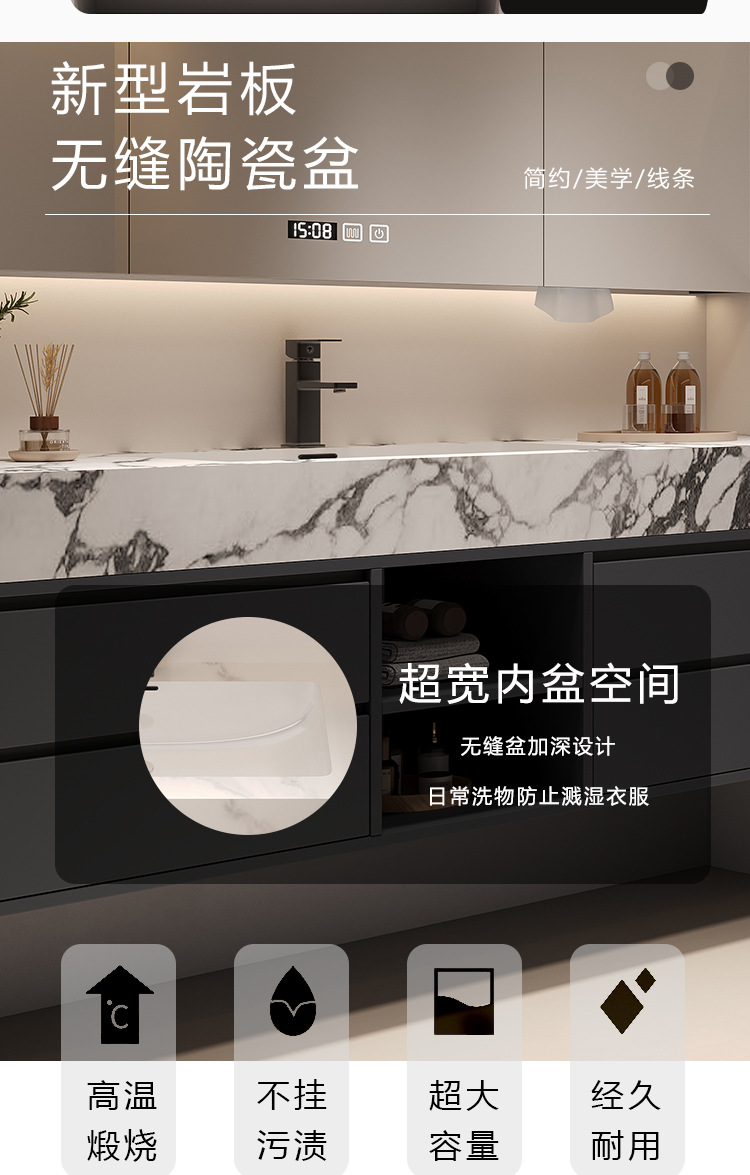 商品名稱:轻奢简约岩板洗漱台无缝陶瓷一体盆浴室柜洗手洗脸盆柜组合卫浴柜