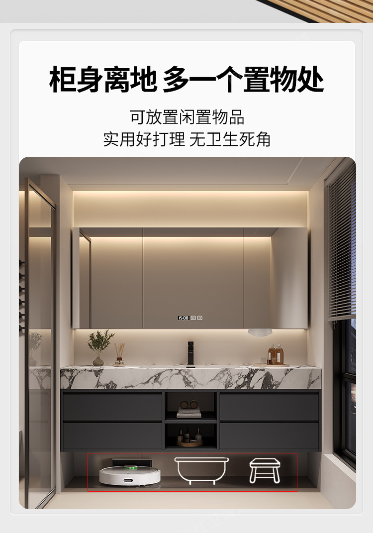 90CM主柜+岩板无缝陶瓷盆+智能镜