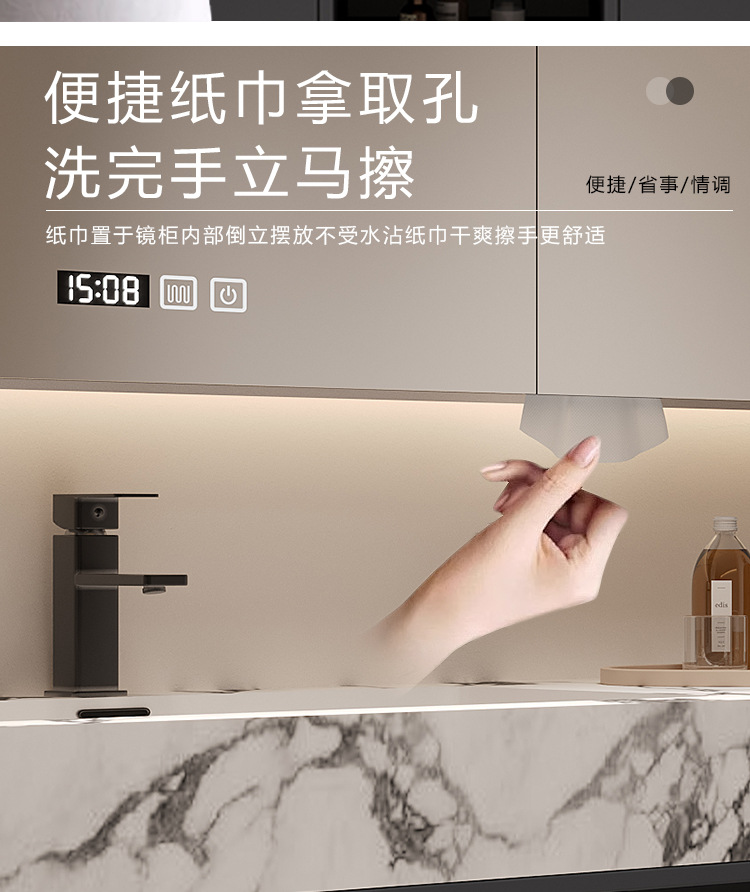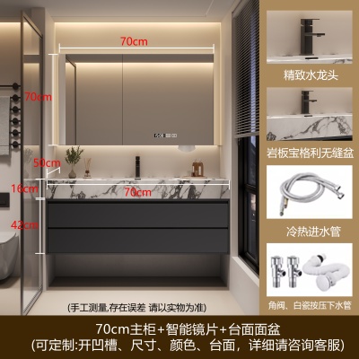 70CM主柜+岩板无缝陶瓷盆+智能镜