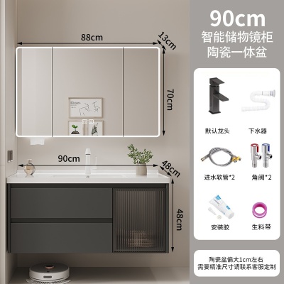 A4深灰60cm智能镜柜陶瓷一体盆