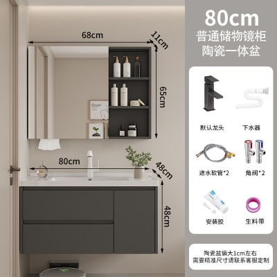 A2深灰60cm普通镜柜陶瓷一体盆
