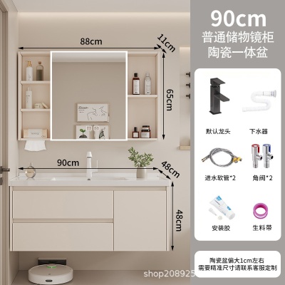 A2奶油60cm智能镜柜陶瓷一体盆
