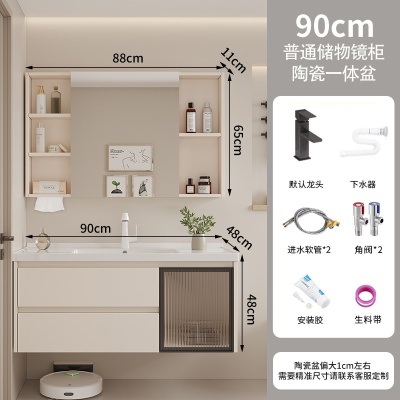 A4奶油60cm智能镜柜陶瓷一体盆