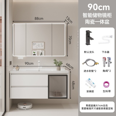 A4白色60cm智能镜柜陶瓷一体盆