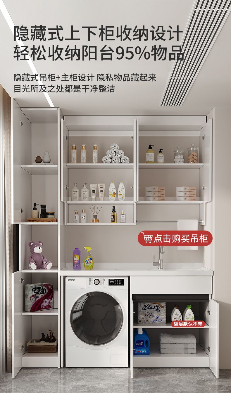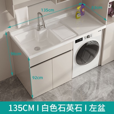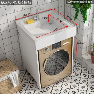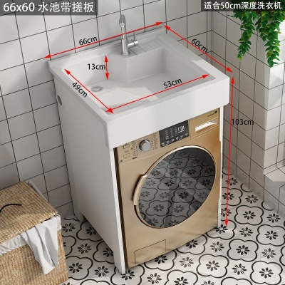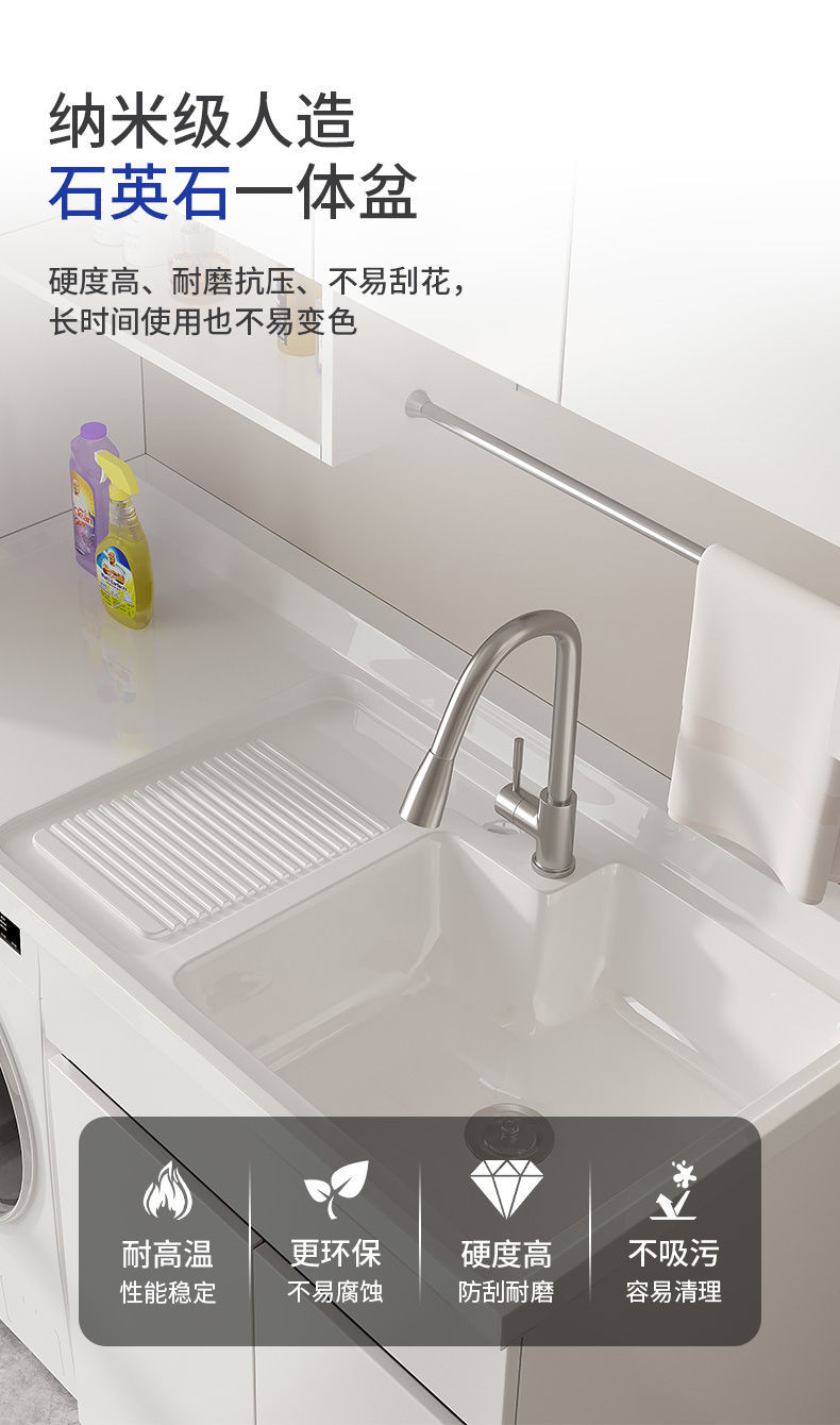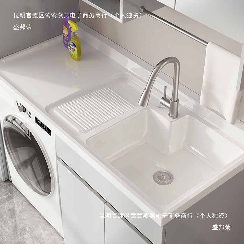 商品名稱:阳台洗衣柜一体台盆洗衣池槽带搓板滚筒洗衣机柜伴侣浴室柜阳台