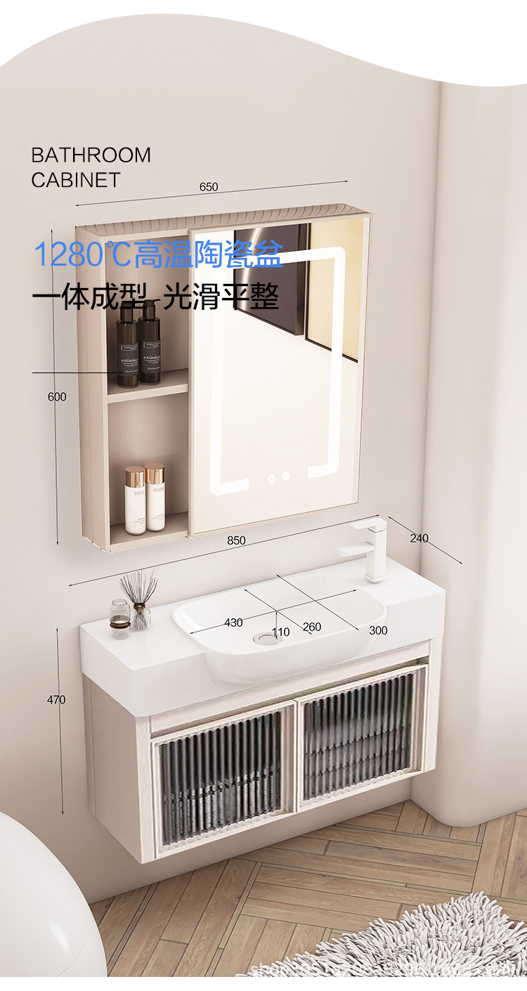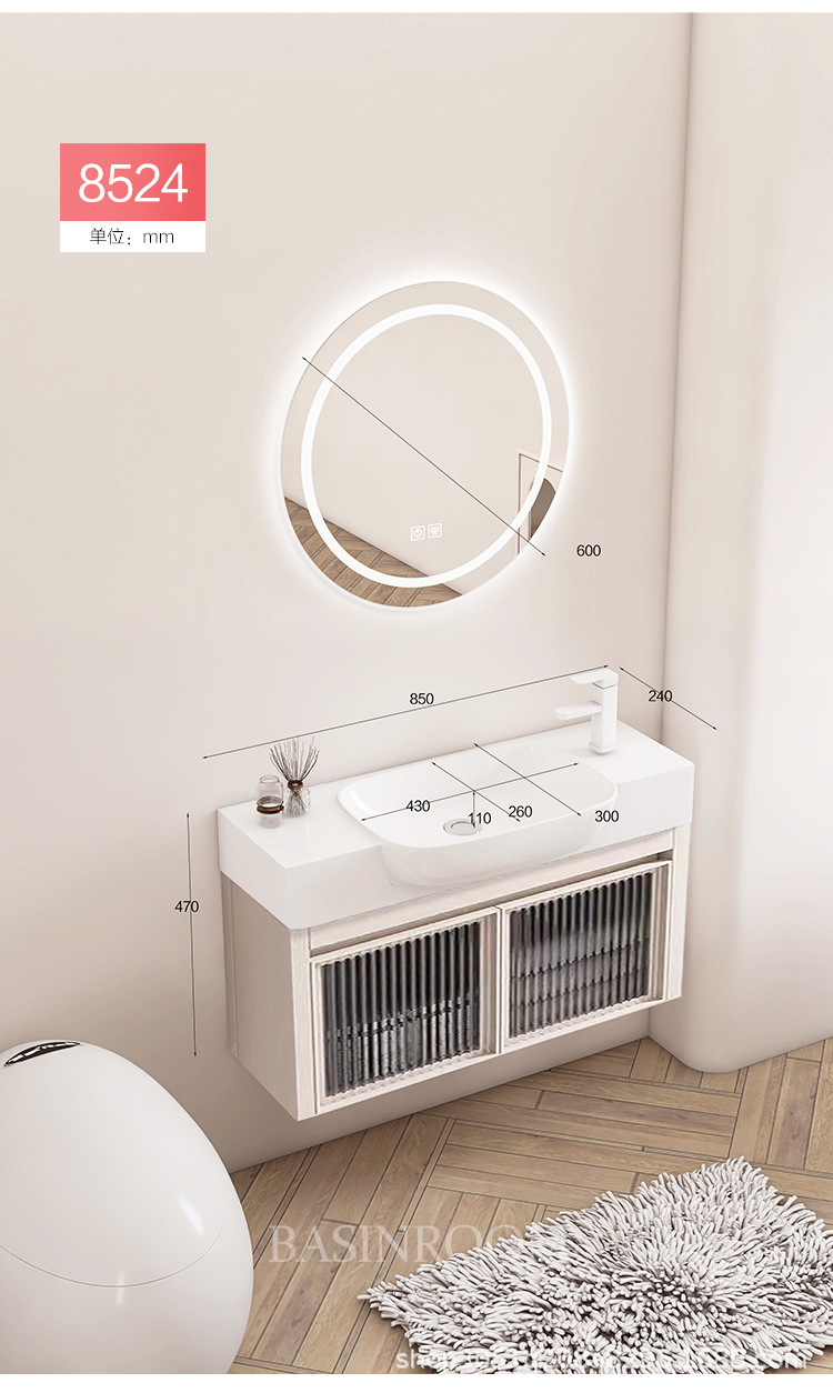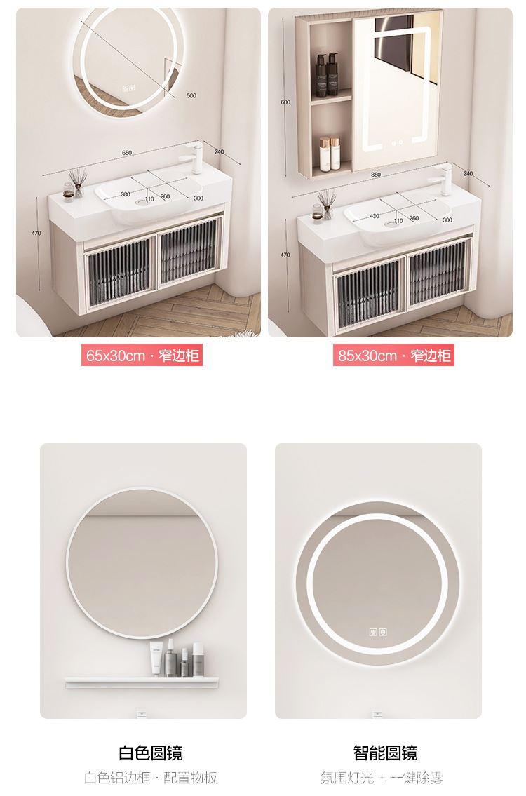 A款窄边85*24cm盆柜+五金+智能圆镜