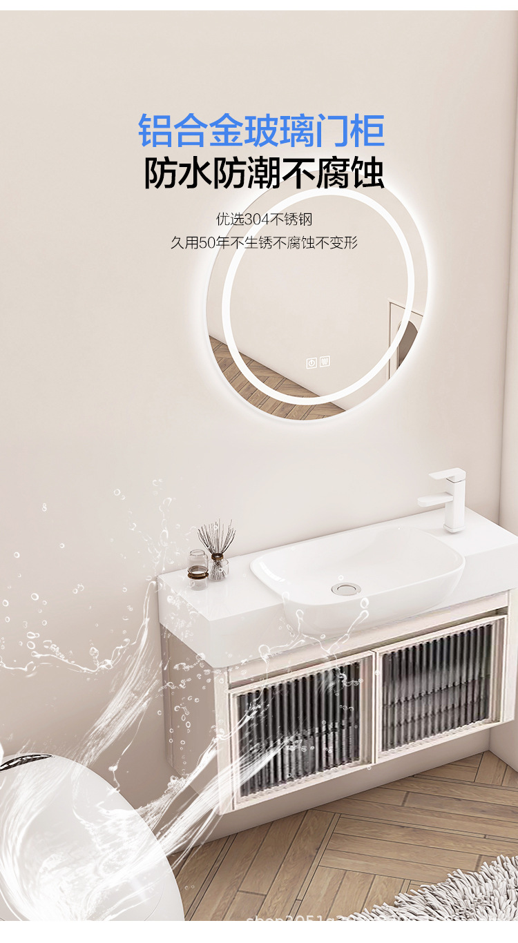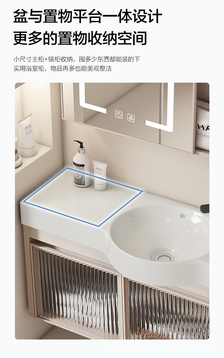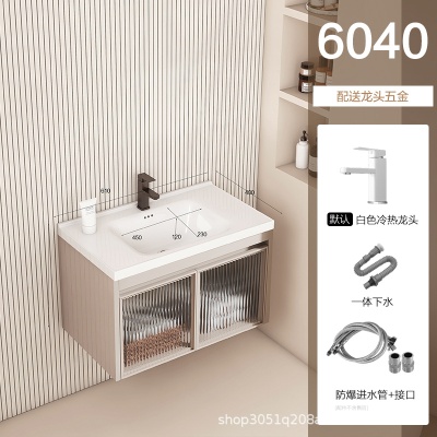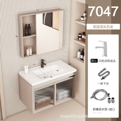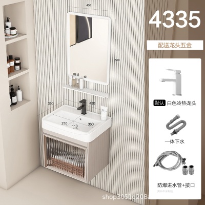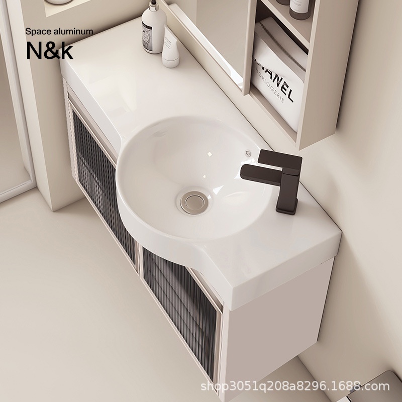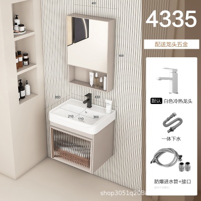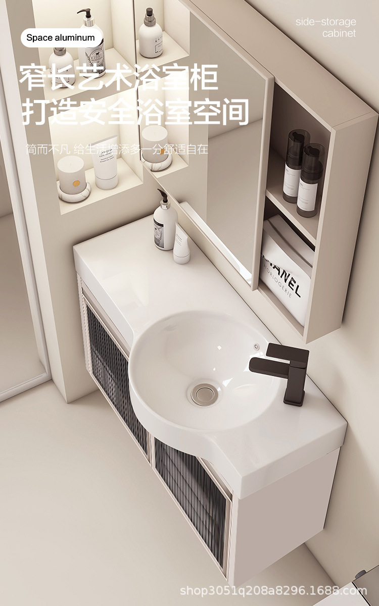 商品名稱:太空铝玻璃门浴室柜小户型洗脸盆柜组合一体洗漱台窄边洗手盆面池