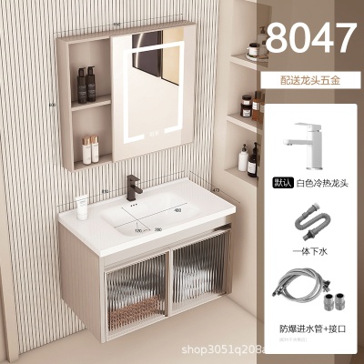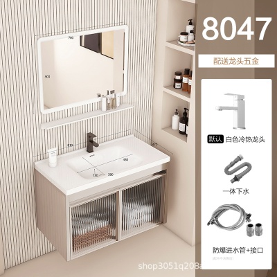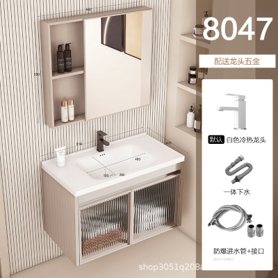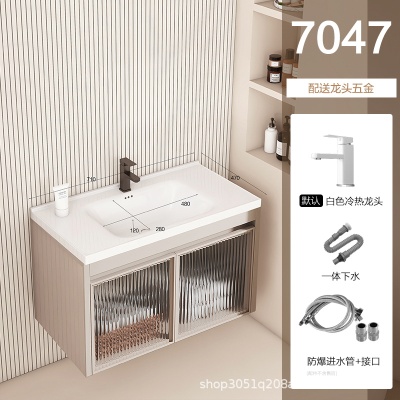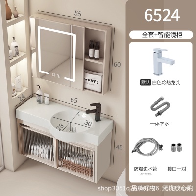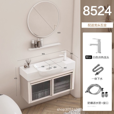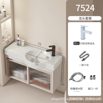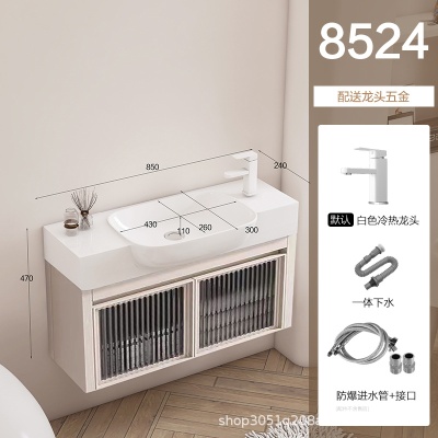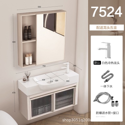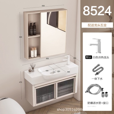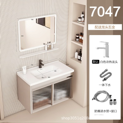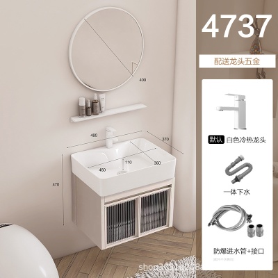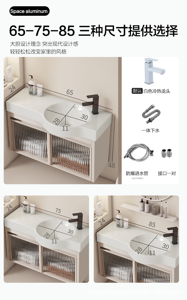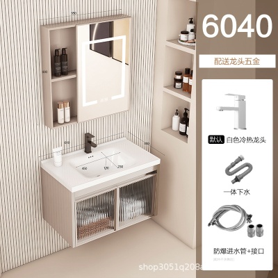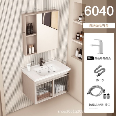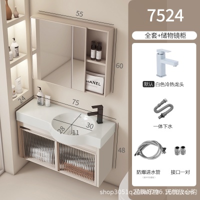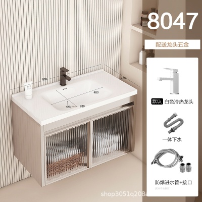 商品名稱:太空铝玻璃门浴室柜小户型洗脸盆柜组合一体洗漱台窄边洗手盆面池