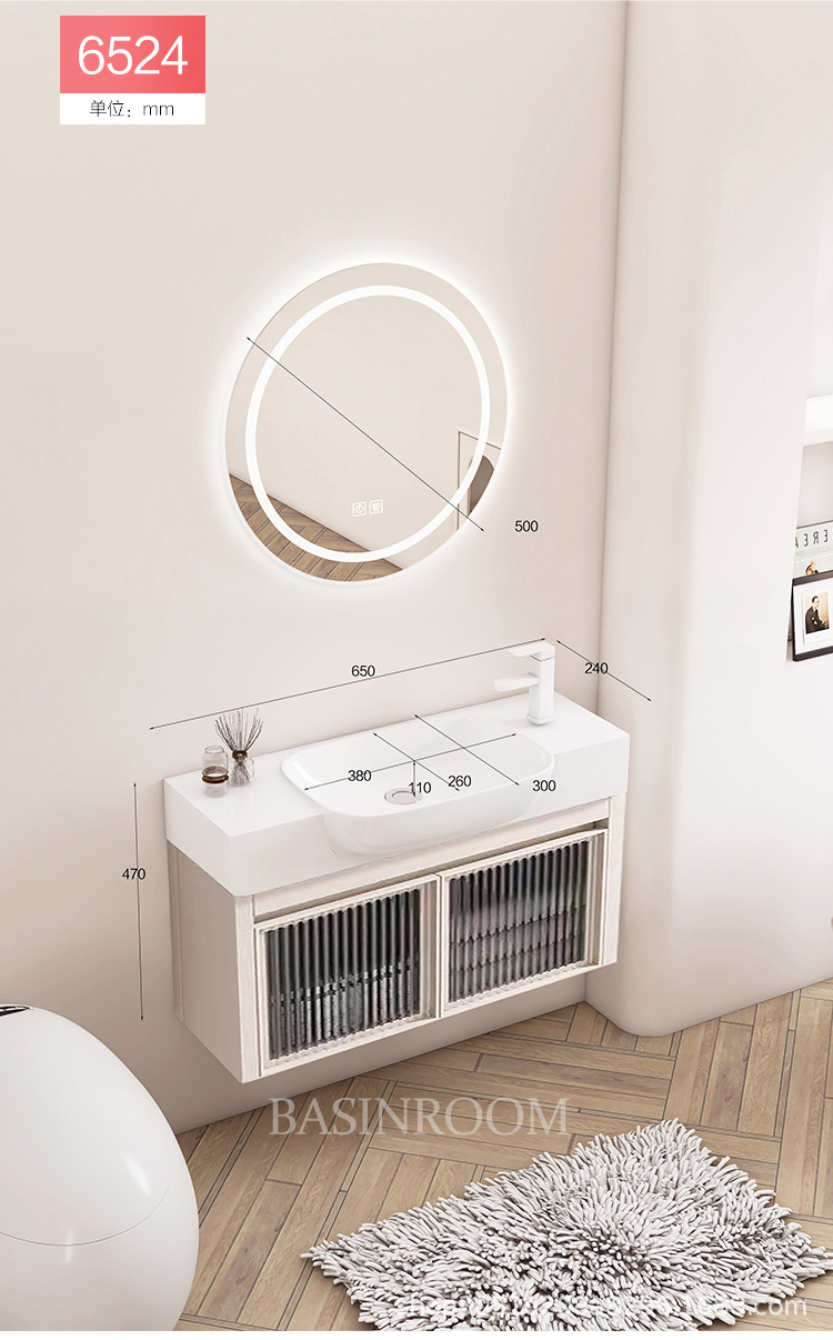 A款窄边65*24cm盆柜+五金+智能圆镜