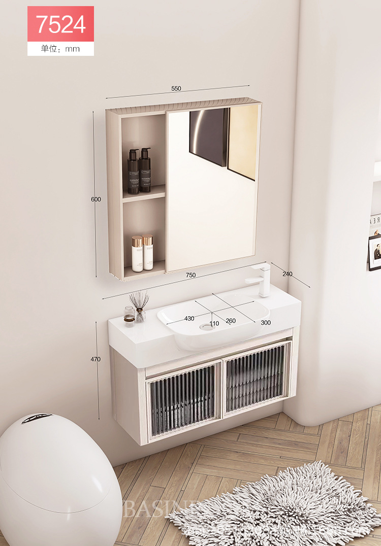 A款窄边75*24cm盆柜+五金+普通镜柜