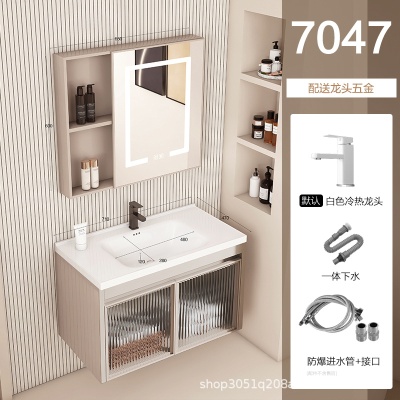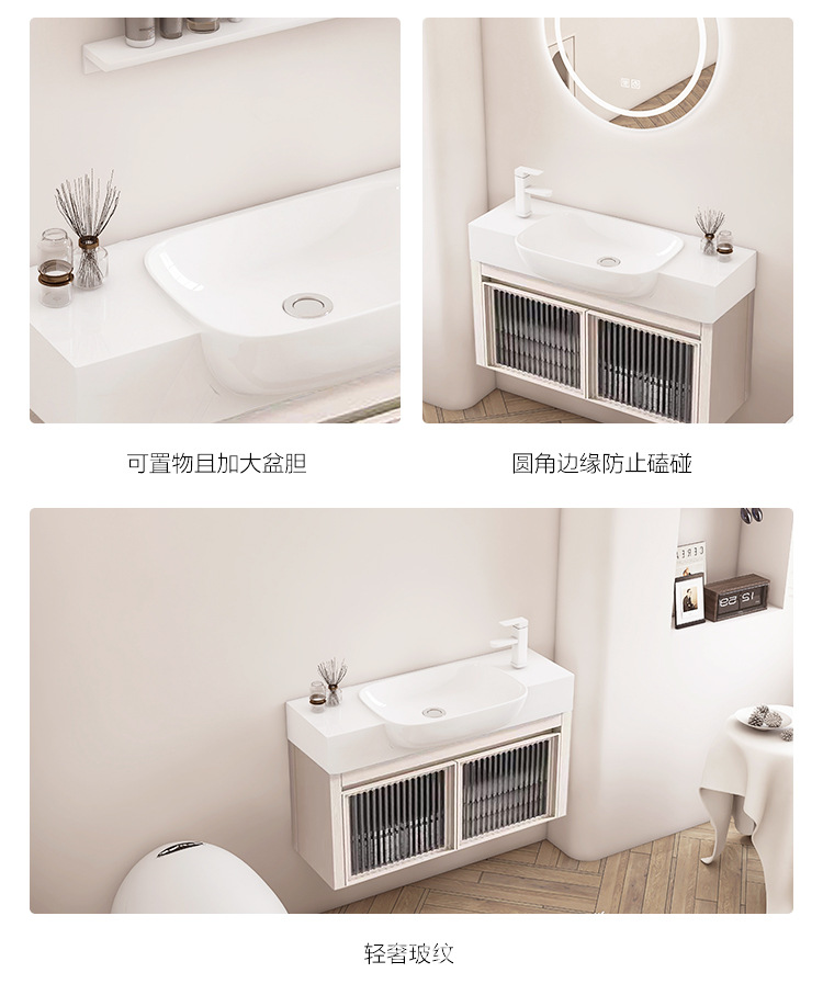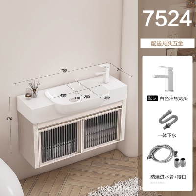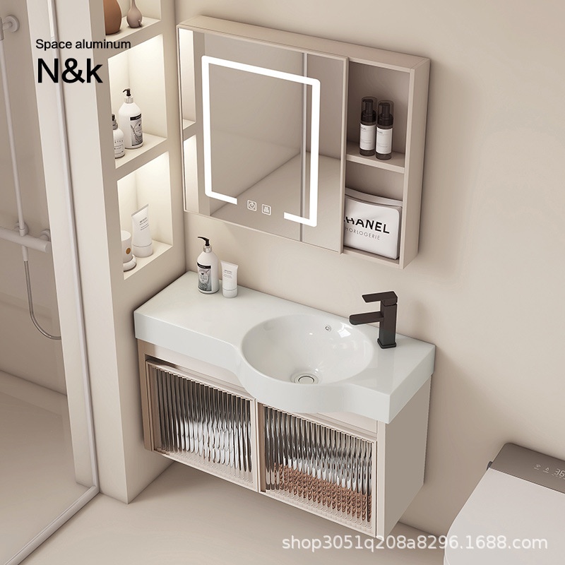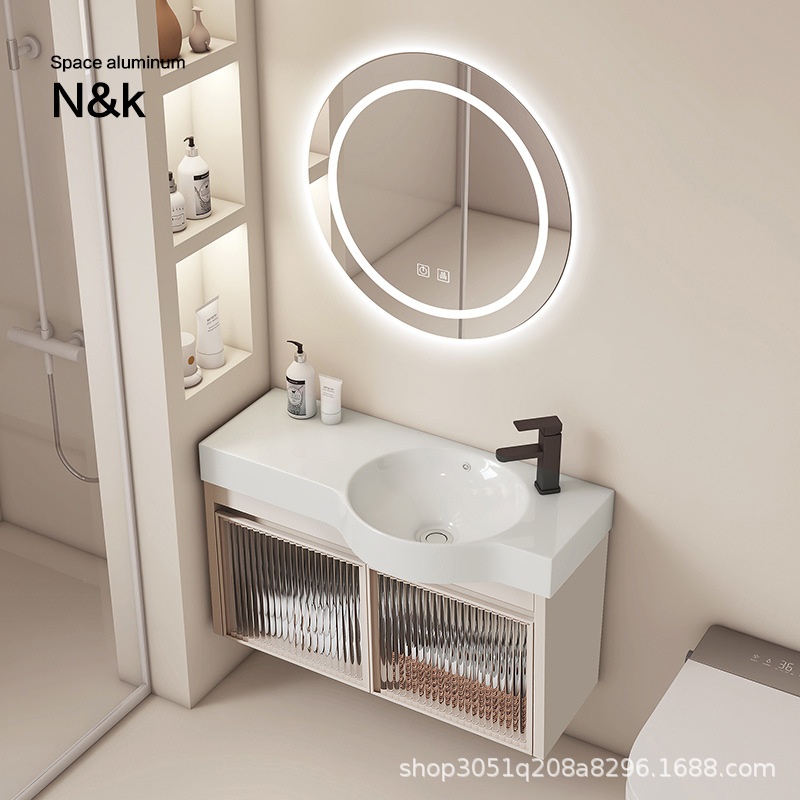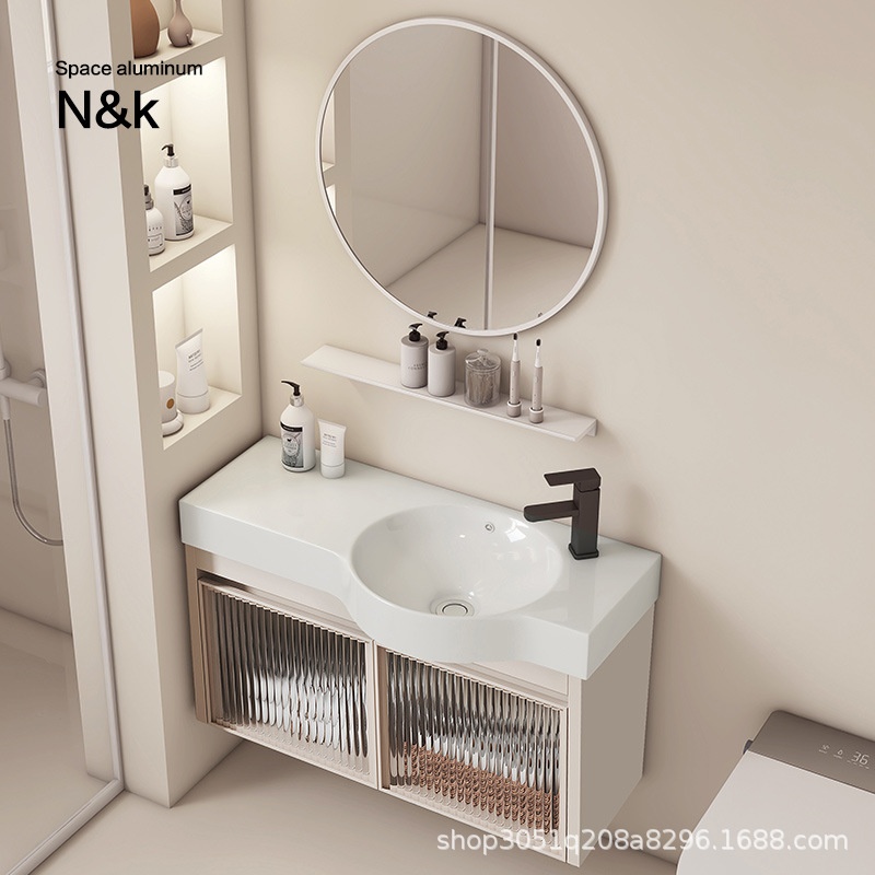 太空铝玻璃门浴室柜小户型洗脸盆柜组合一体洗漱台窄边洗手盆面池