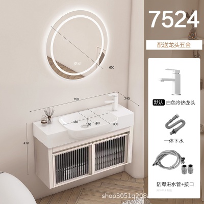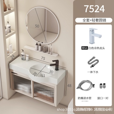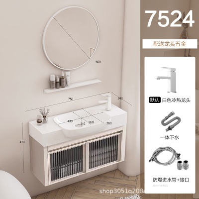 A款窄边75*24cm盆柜+五金+智能圆镜