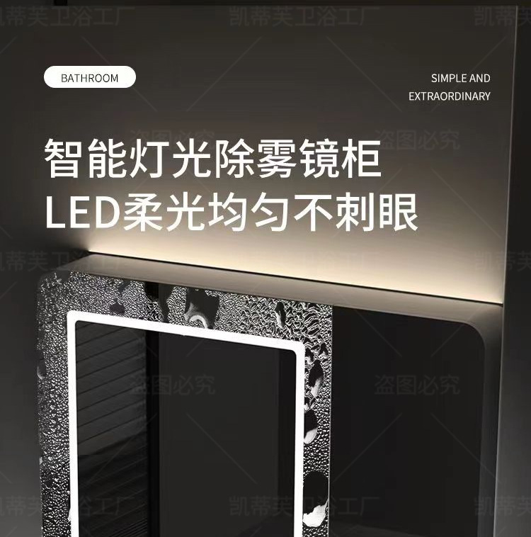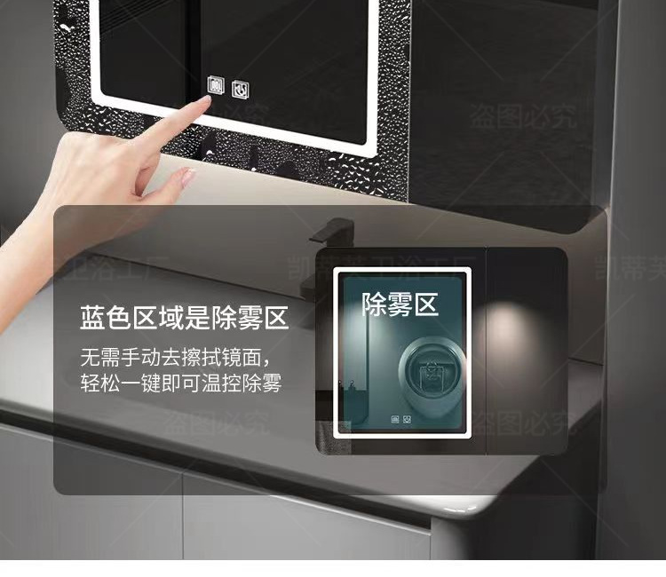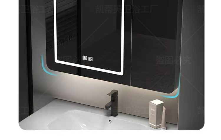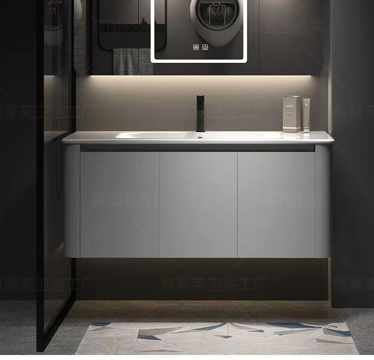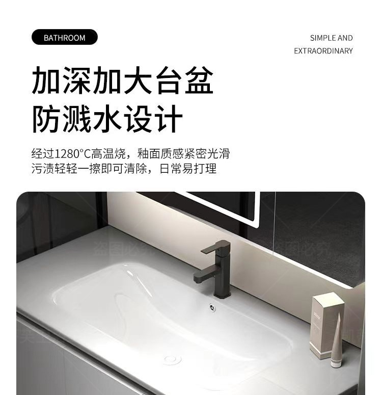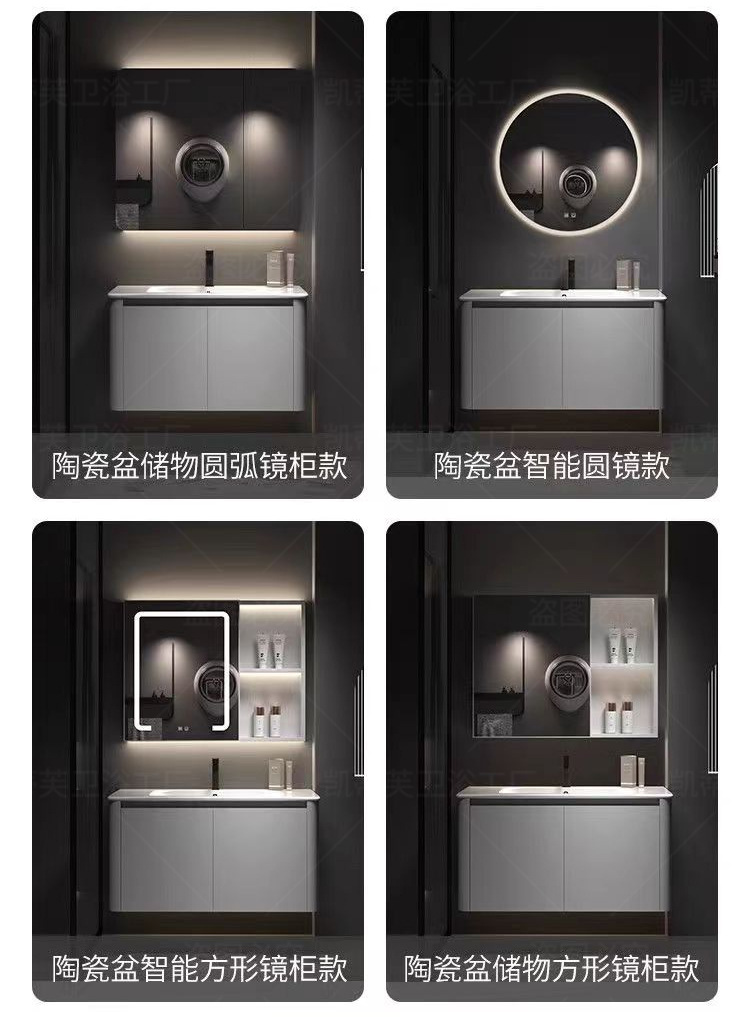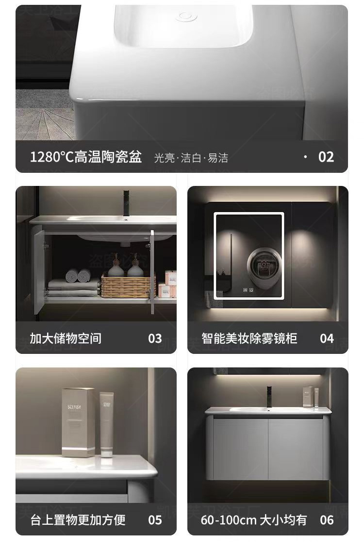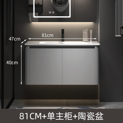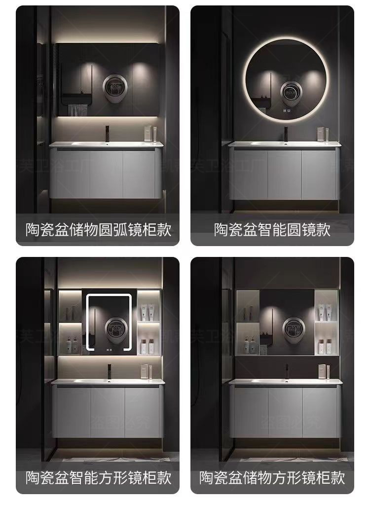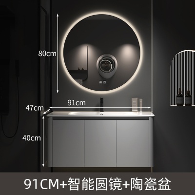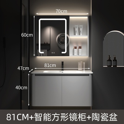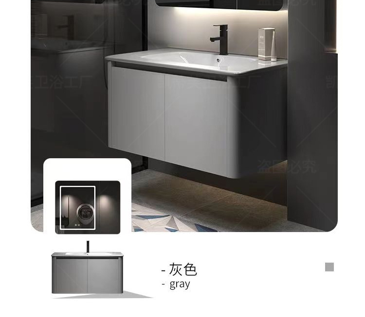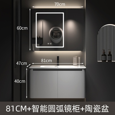 灰色圆角80CM陶瓷一体盆+智能镜柜