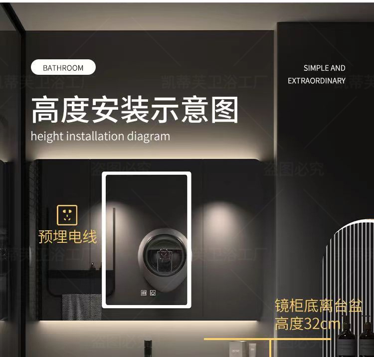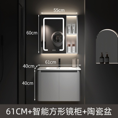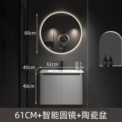 灰色圆角60CM陶瓷一体盆+智能镜柜