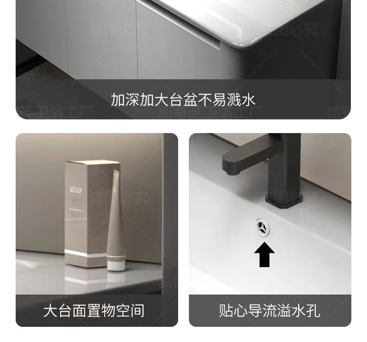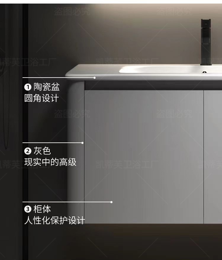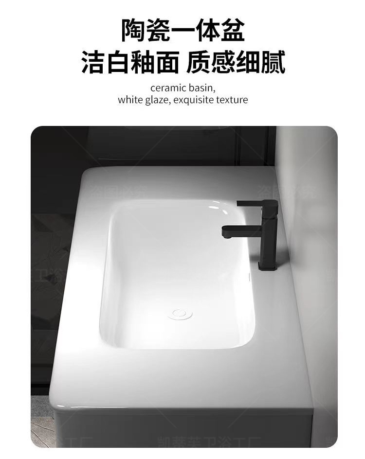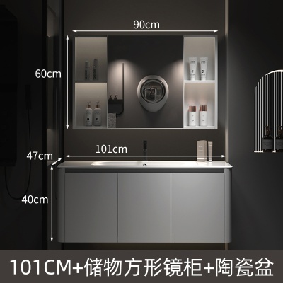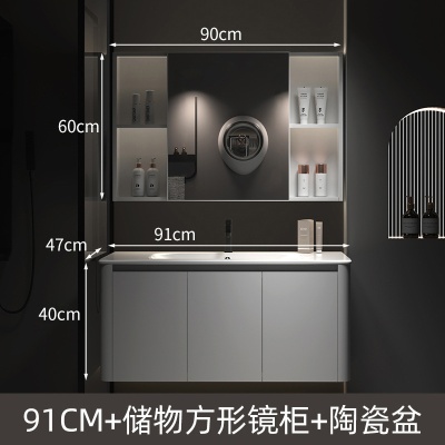 灰色圆角60CM陶瓷一体盆+储物镜柜