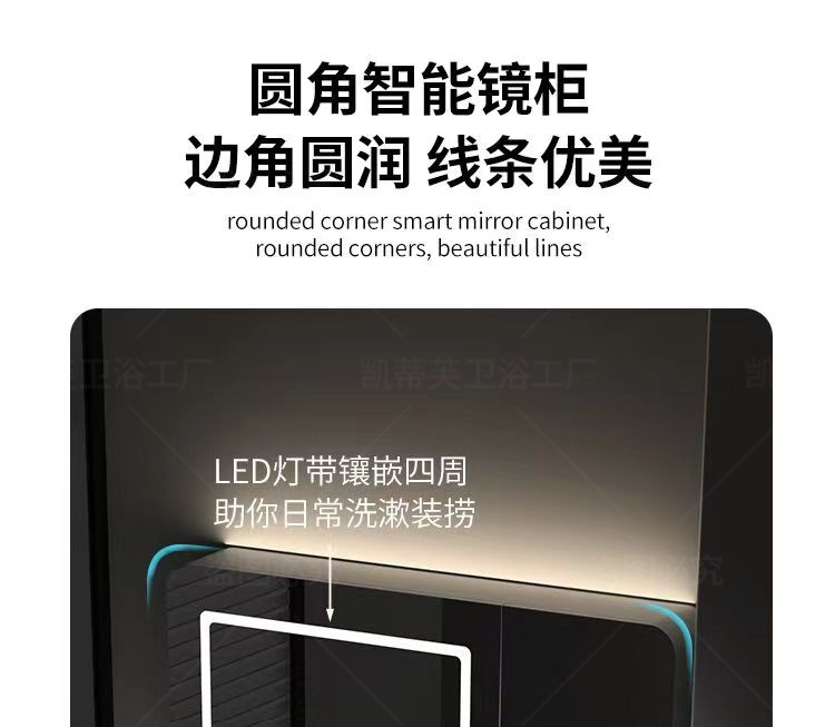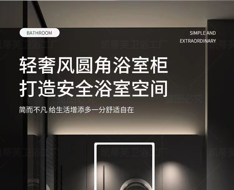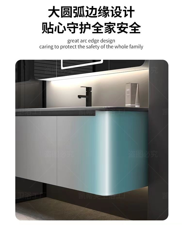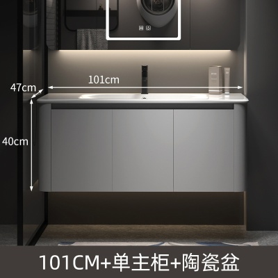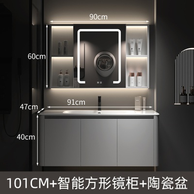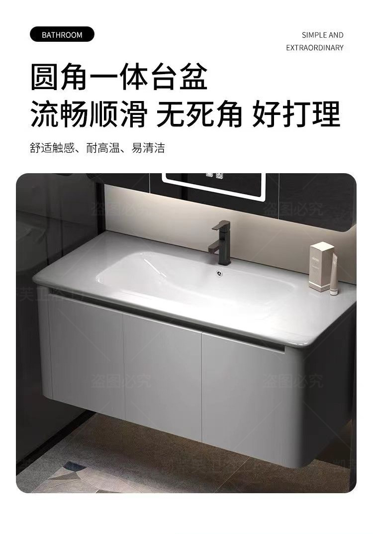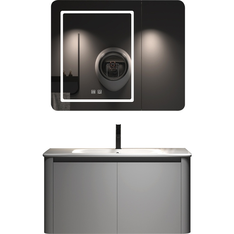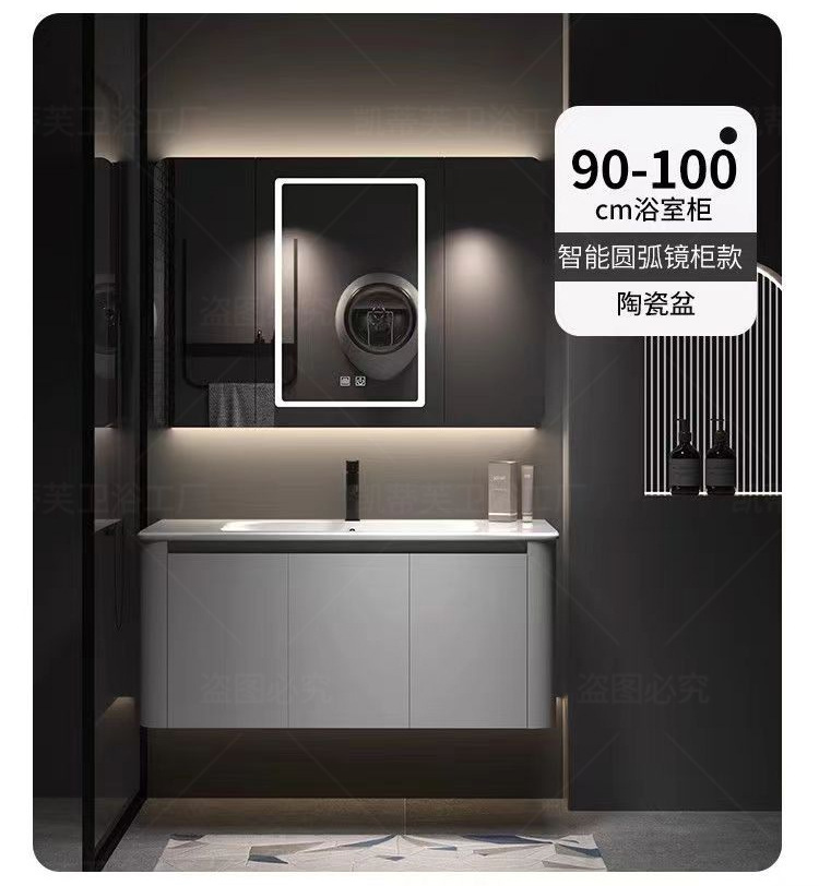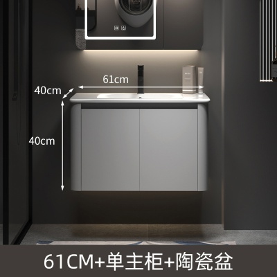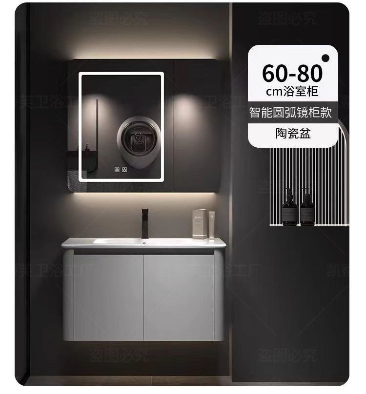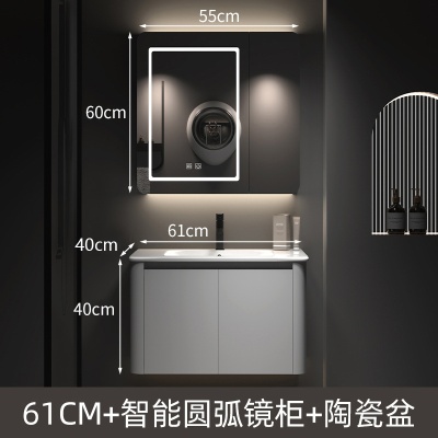 灰色圆角60CM陶瓷一体盆+圆弧智能镜柜