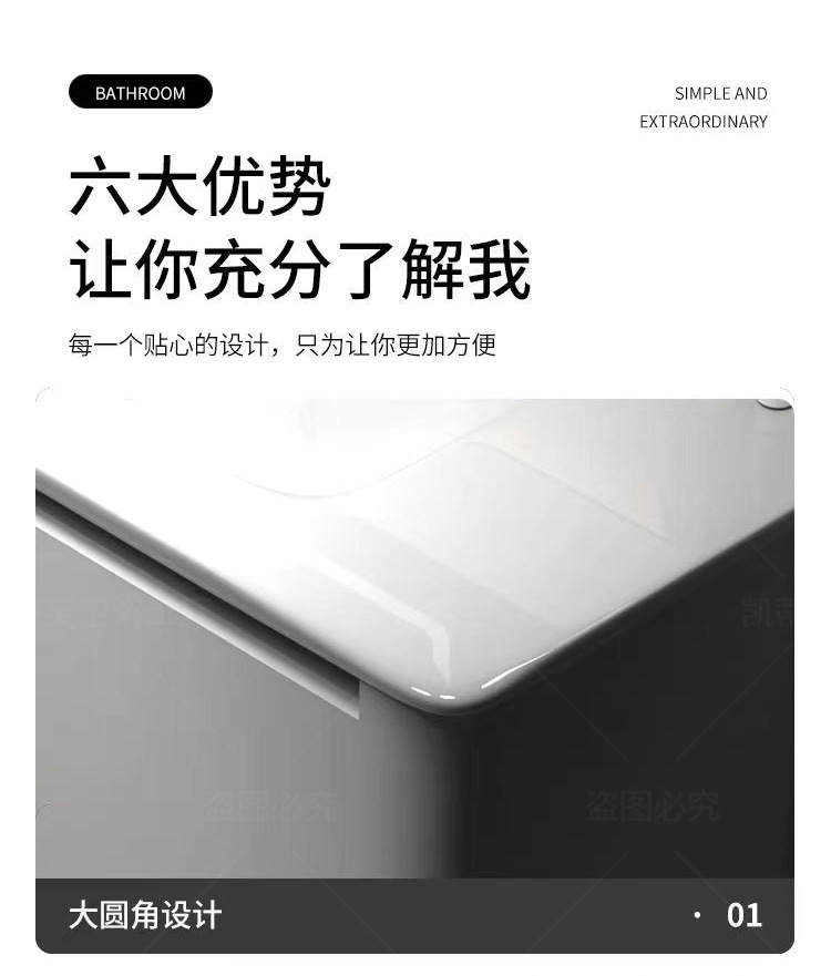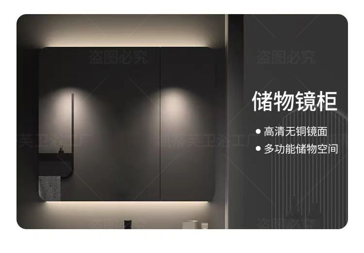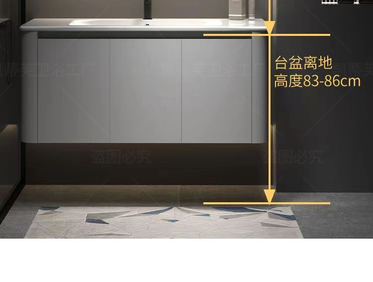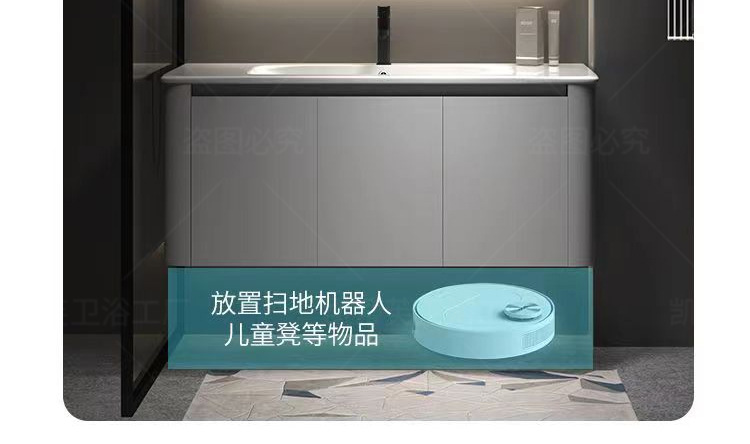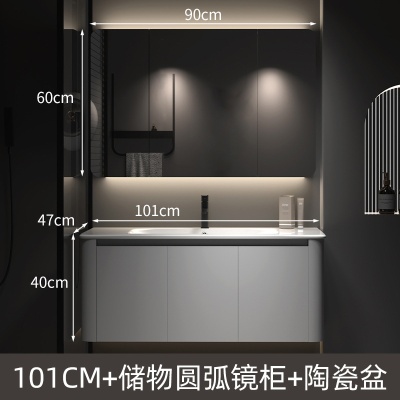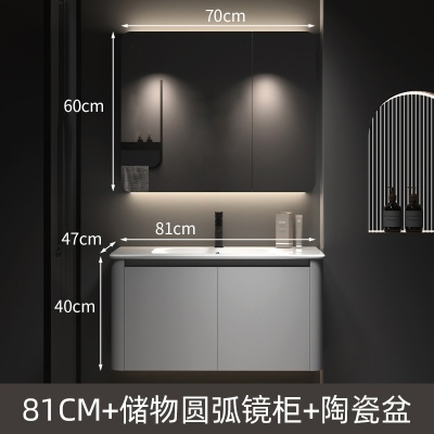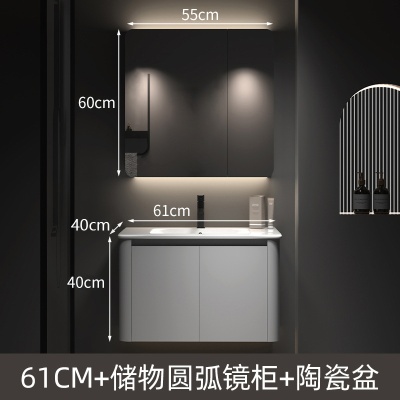 灰色圆角60CM陶瓷一体盆+圆弧储物镜柜