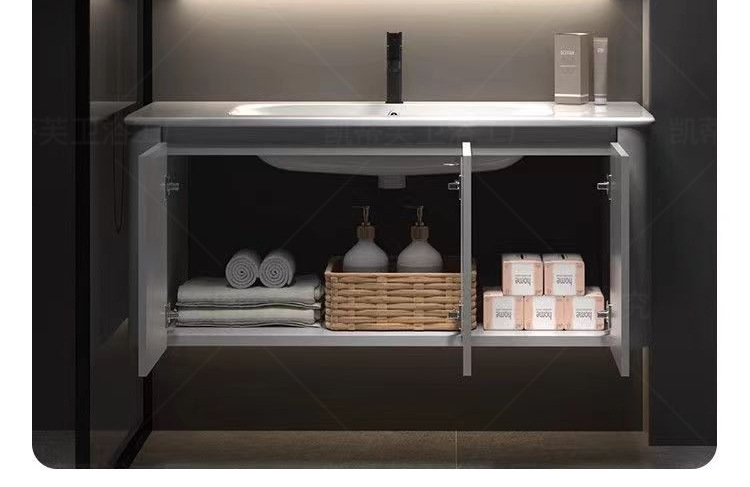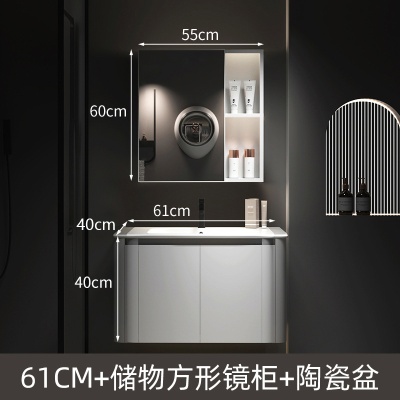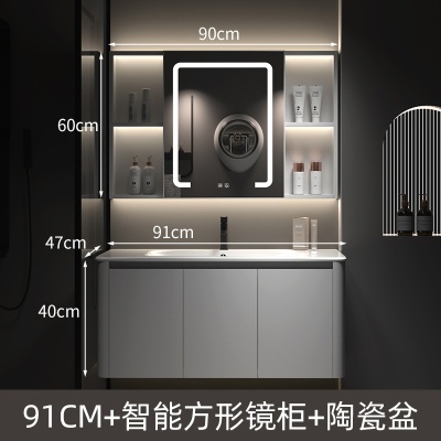 商品名稱:新款太空铝浴室柜组合卫生间洗手盆卫浴吊柜陶瓷一体盆洗漱台镜柜