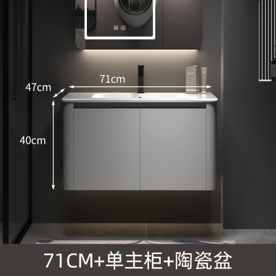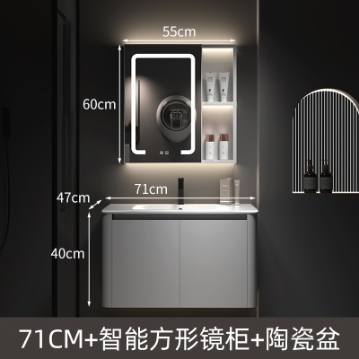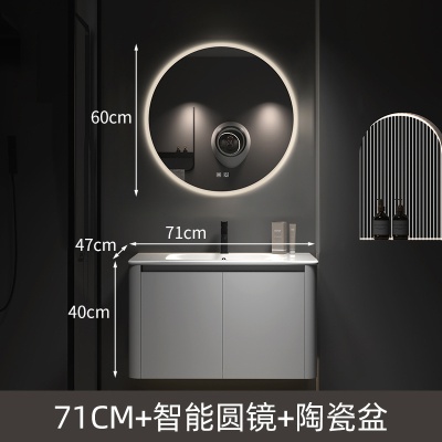 灰色圆角70CM陶瓷一体盆+智能镜柜
