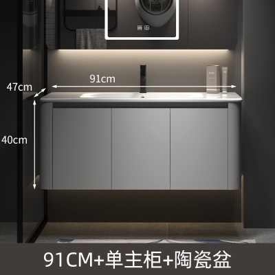 新款太空铝浴室柜组合卫生间洗手盆卫浴吊柜陶瓷一体盆洗漱台镜柜