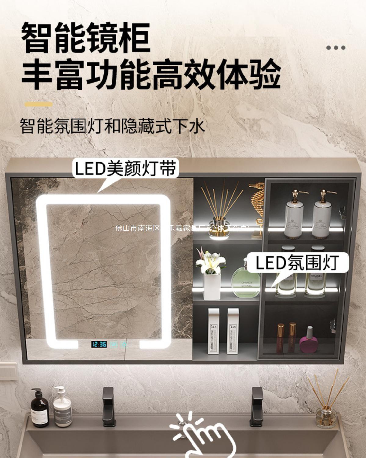 咖啡色-隐藏下水器【吊柜】-0.8米智能镜柜+质保(全新龙头)