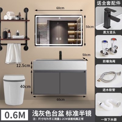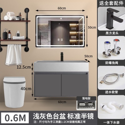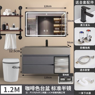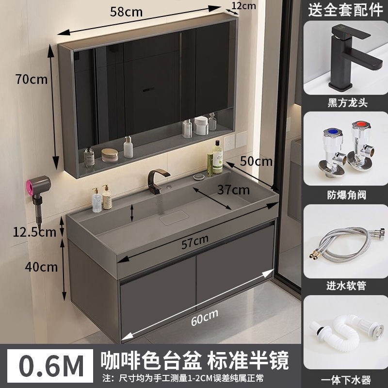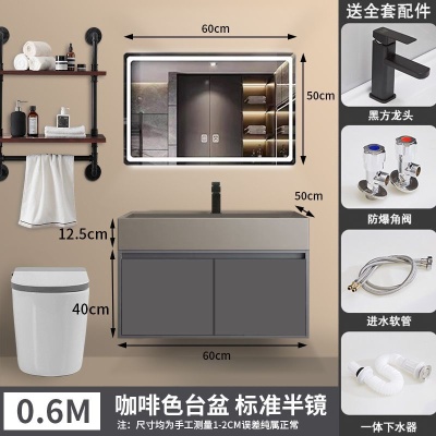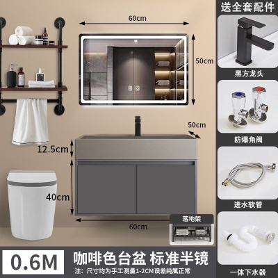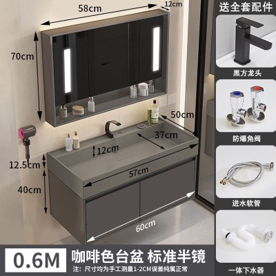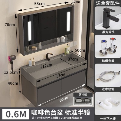 咖啡色-隐藏下水器【吊柜】-0.6米方镜款+质保(全新龙头)