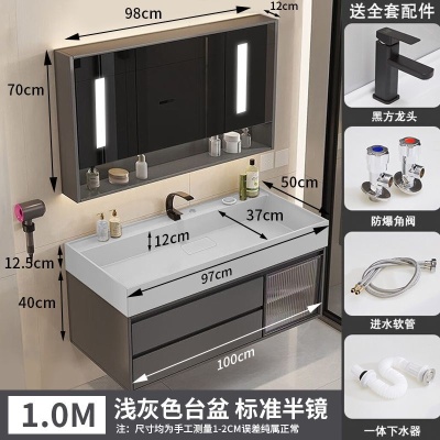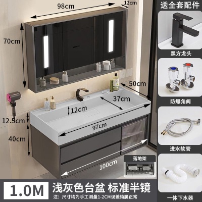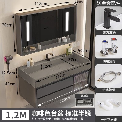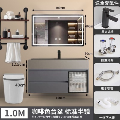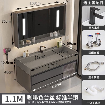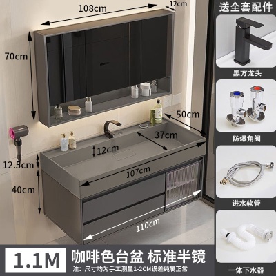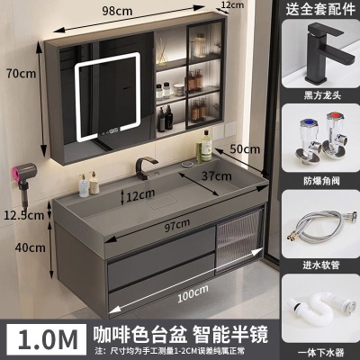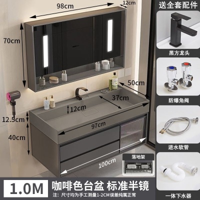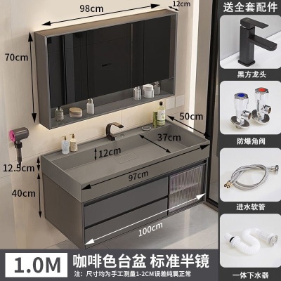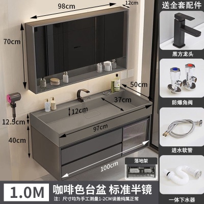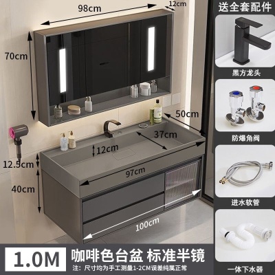 咖啡色-隐藏下水器【吊柜】-1米方镜款+质保(全新龙头)
