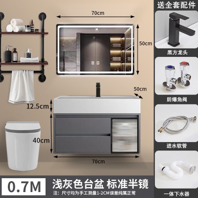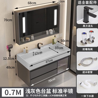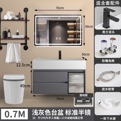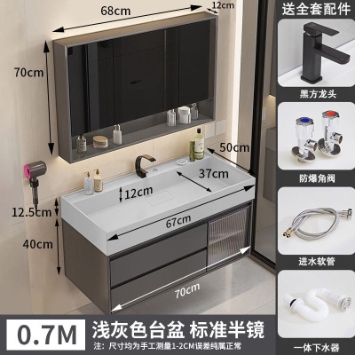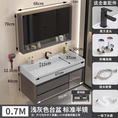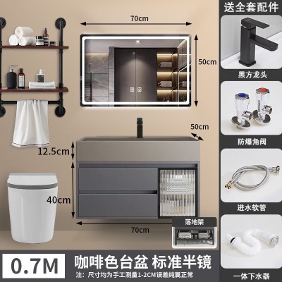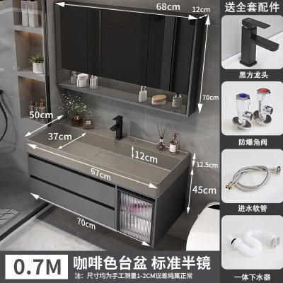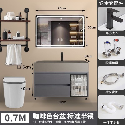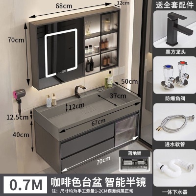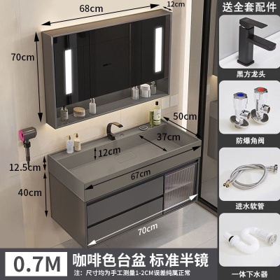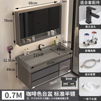 咖啡色-隐藏下水器【吊柜】-0.7米普通镜柜+质保(全新龙头)