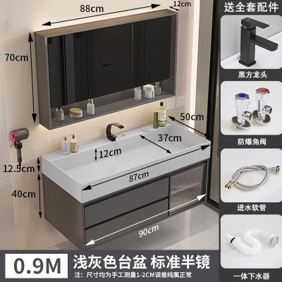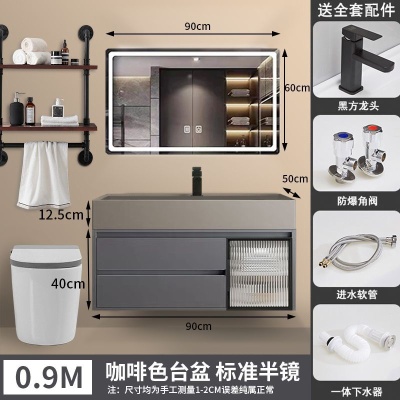 咖啡色-隐藏下水器【吊柜】-0.9米方镜款+质保(全新龙头)